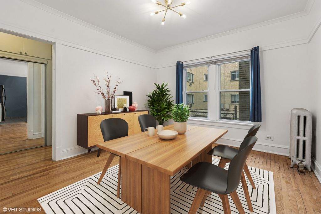 Welcome home to this sunny and spacious one bedroom, one bathroom co-op located on the border of Edgewater and Andersonville. You'll be greeted by a welcoming foyer that opens to a light-filled living room. The separate dining room features modern lighting and the unit offers a huge hallway closet with built-in shelving for additional storage. The kitchen boasts ample cabinet and counter space, perfect for cooking and entertaining. The bedroom can easily accommodate a king-size bed. Additional building amenities include a pretty courtyard and a laundry room located in the basement. There are a total of three closets in the unit located in the foyer, hallway and bedroom. Enjoy unbeatable convenience just two blocks from the historic Bryn Mawr shopping district filled with local coffee shops, restaurants, and the Bryn Mawr Red Line stop. Andersonville's vibrant shops and dining, Hollywood Beach, Foster Beach, and the lakefront are only a few blocks away. Jewel-Osco is just one block from your door and Lake Shore Drive is easily accessible for a quick commute downtown. With rents rising year after year, this is an excellent alternative to renting, plus property taxes and heat are included in the monthly HOA.