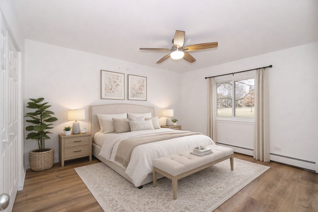 Beautifully remodeled 2 bedroom, 1 bath condo in a prime Arlington Heights location. The updated kitchen features white cabinets and new stainless-steel appliances. New Core Vinyl Plank flooring installed throughout the home, complemented by fresh paint and ceiling fans. Stunning updated bathroom. Newer windows throughout with the exception of the slider. Fresh, clean updates throughout create a move-in ready home with a modern feel. Enjoy relaxing on the patio overlooking Sunset Meadows. Conveniently located near the golf course, expressways, restaurants, and shopping. Nothing to do here but move in. This is a great place to call home! HOA includes heat, water, scavenger.