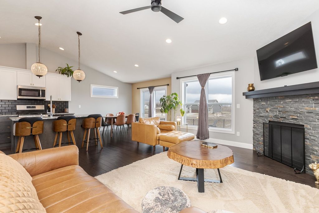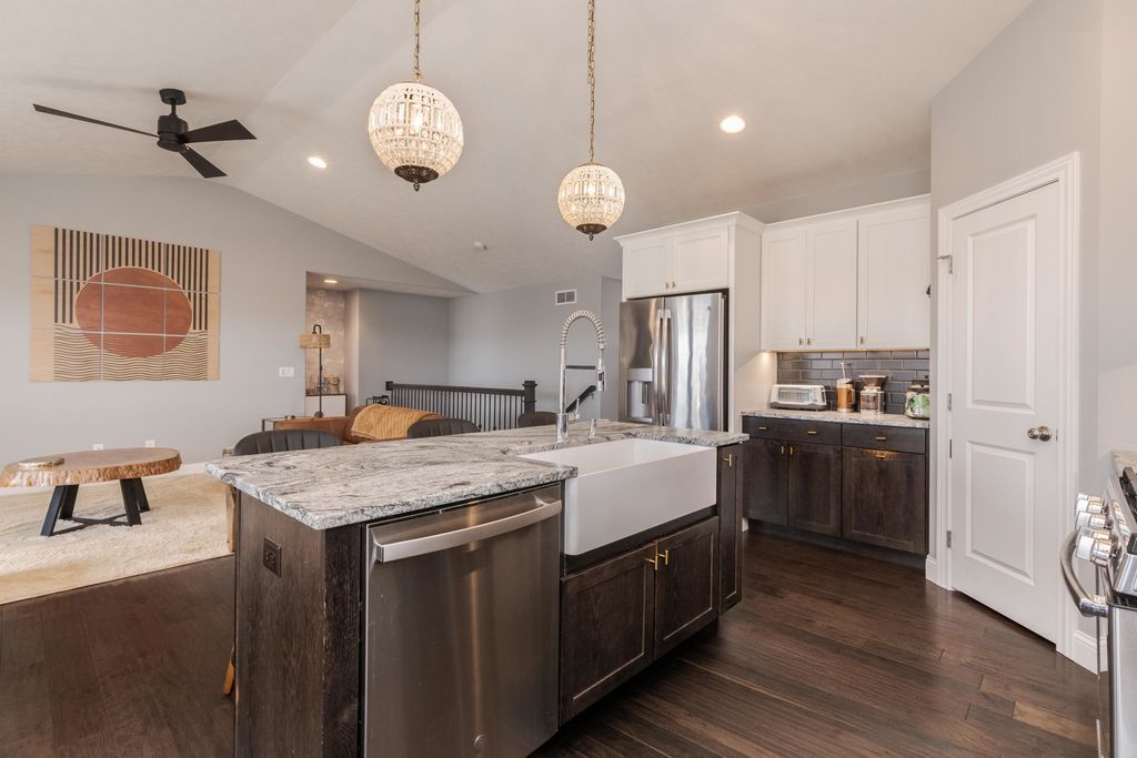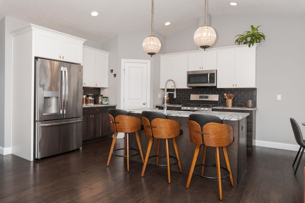What an incredible and stylish one-story, only 8-year-young, 3-bedroom, Trunk Bay built home in the beautiful Blackstone Trails subdivision! From the moment you walk in, you are greeted with elevated finishes, including high-quality engineered hardwood flooring in deep walnut throughout the entire main level, lighting fixtures that belong in a home magazine, and paint colors that are right on trend. The kitchen features granite counters that have been "honed" to achieve a luxurious matte finish. In the kitchen corner, you'll find the step-in pantry with an automatic light and plenty of space. All of the high-end appliances will remain, including the washer and dryer. Two generously sized bedrooms can also be discovered on this main level. Then head downstairs to the fully finished basement to see the family room with hidden wiring for its entertainment components, the third bedroom, and the third full bathroom. The basement carpet is only 2 years old and has never had any animals on it. This bathroom, just like the other two bathrooms, also has a full tiled tub/shower surround. This home gives you all of the current on-trend finishes, plus the extras you won't find in the new homes, features like a fully fenced and landscaped backyard, a Japanese maple tree, planted hydrangea bushes, and an outdoor wireless sound system. The meticulously cared-for home has received twice-yearly regular service on the hvac system and has even already paid in full the 2026 Tru Green fertilizer treatments. The subdivision also features a private lake with a paved trail surrounding it, and this location is only minutes from shopping, restaurants and I-55 access! What a true GEM!