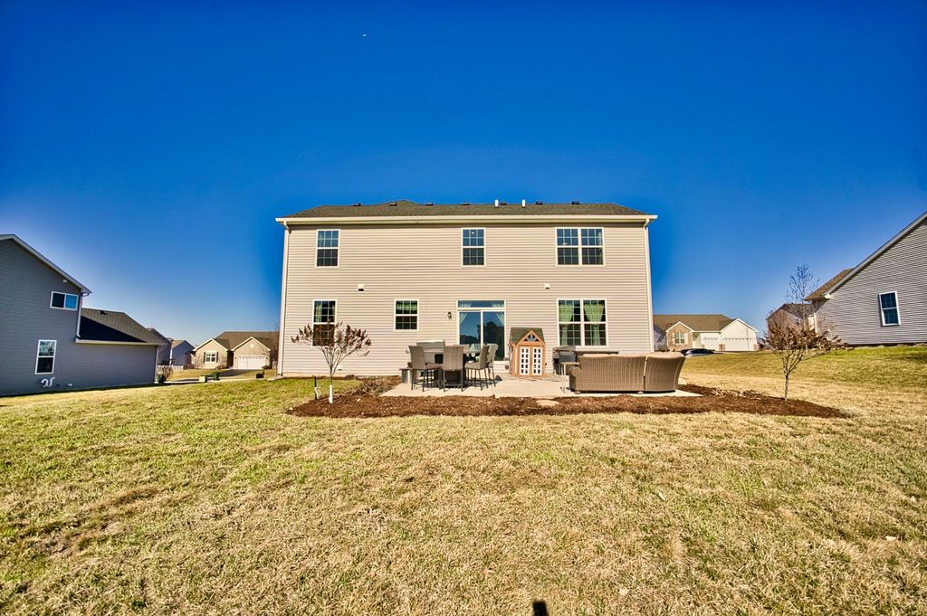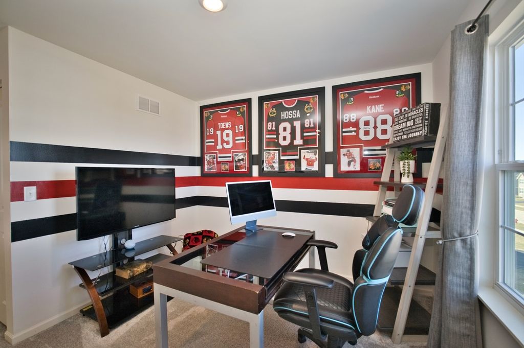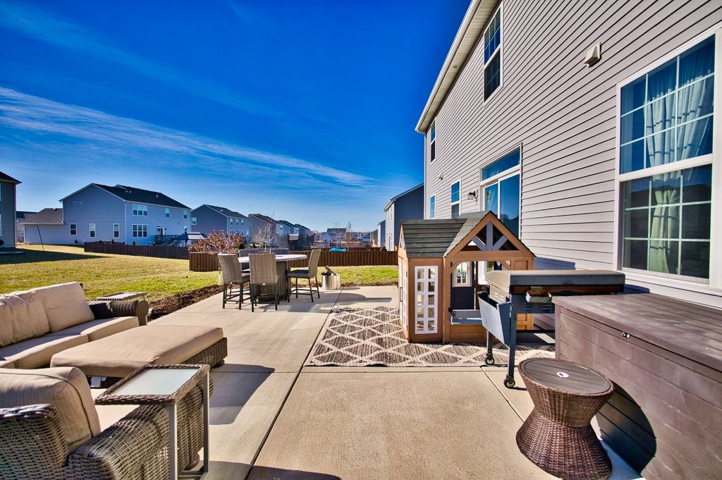 Don't miss the opportunity to tour this stunning two-story home in the highly sought-after Raintree Village. This rare find offers the luxury and modern features of new construction-without the wait. Step inside to an impressive two-story foyer featuring a beautiful staircase with elegant metal baluster railings. The main level boasts 9-foot ceilings, formal living and dining rooms, and a versatile private study - perfect for working from home or a retreat for guests. The modern kitchen is designed to impress with quartz countertops, custom 42" Aristokraft cabinetry, a large center island and a bright breakfast area. GE stainless steel appliances complete the space, creating the perfect balance of style and functionality. Upstairs, the luxurious primary suite offers a spacious walk-in closet and a spa-inspired bath featuring an oversized walk-in shower, dual quartz comfort-height vanities and a private SmartHeight commode. The second floor includes two additional generously sized bedrooms, a large hall bath, an inviting loft space and the convenience of second-floor laundry. Be sure to explore the fully finished basement-an entertainer's dream featuring a large family room, wet bar and eat-in area, while still providing plenty of space for storage. This home features smart home automation including a Ring video doorbell, protected keyless entry, and a Wi-Fi thermostat. Opportunities like this don't come often-schedule your showing and experience everything this exceptional Raintree Village home has to offer.