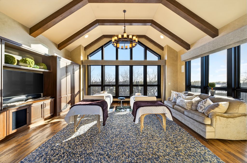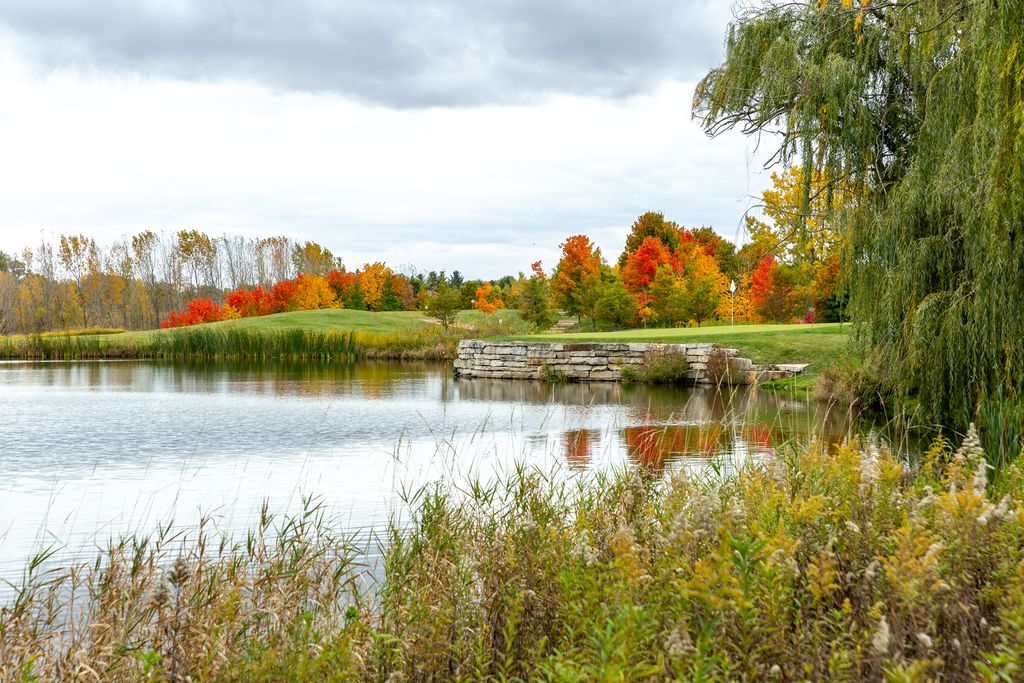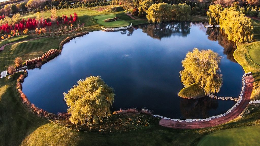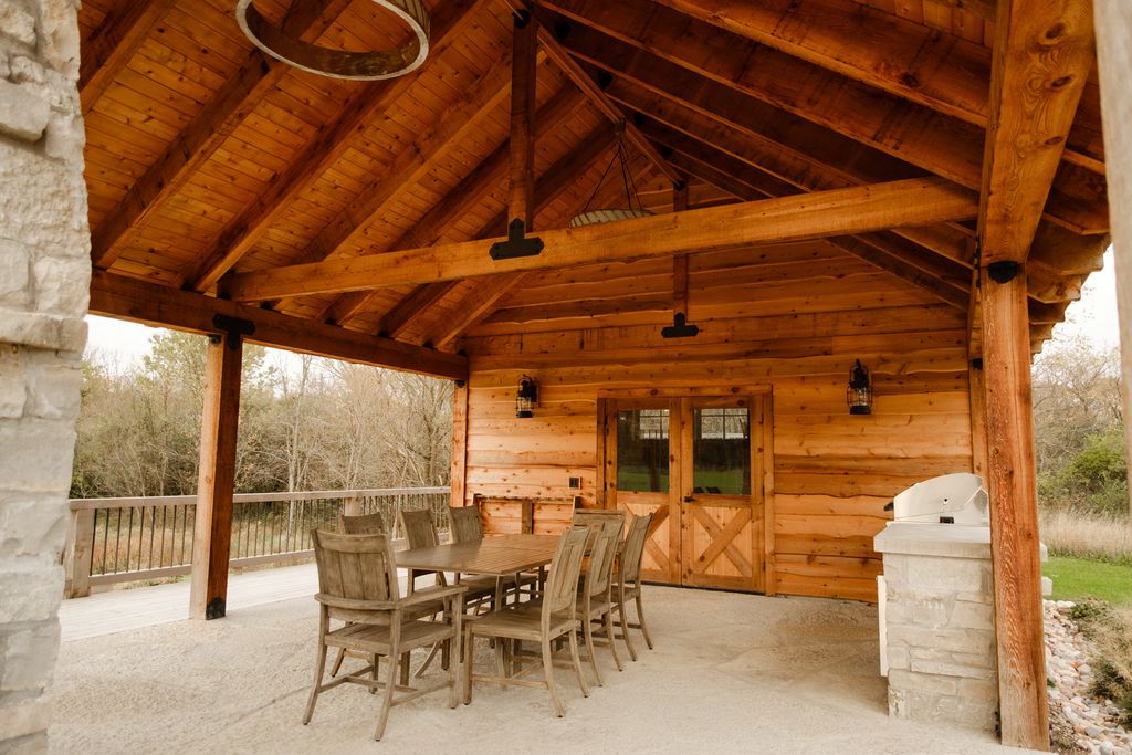 Midwest's premier ~490-acre secluded private estate, just 50 miles from Chicago's O'Hare Airport in northern McHenry County, Illinois. A visionary transformation of former farmland, with over 1M cubic yards of earth moved to create rolling hills, dramatic mounds, engineered lakes, restored prairies, mature woodlands, and park-like landscapes. 20K+ planted hardwoods, evergreens, fruit trees, and sugar maples ensure privacy, beauty, and abundant wildlife habitat. Miles of groomed multi-use trails, gravel roads, timber bridges, and gated entries with perimeter berms provide seclusion and effortless access. Championship Golf: Private 18-hole course (6,709 yards, par 72, slope 130). Innovative design with 8 premium bentgrass greens and 15 strategic tee boxes delivering 18 completely unique holes, distances, and challenges. Fine fescue fairways, deep bunkers, water hazards, sculpted mounds. Fully irrigated from the 5-acre main lake and maintained to resort standards with daily staff care since 2010. Fewer than 500 rounds annually keeps it in pristine, flawless condition. Trophy Waters: Stunning 60-ft-deep main lake + additional stocked, aerated waters offer blue-ribbon fishing for bass, walleye, northern pike, perch, and panfish. Private docks and managed habitat deliver consistent trophy action. Iconic Treetop Silo Spa: One of a kind cantilevered silo retreat-30-ft glass elevator to treetop level. Private spa with full bath, wet bar, wraparound deck for panoramic views, and signature glass floor overlooking lush botanical garden (serene water feature, fire wall, ambient music). Smart home controls for lighting, shades, media, and fire feature. Perfect for massages, relaxation, or intimate gatherings. Luxury Main Lodge (~7,000 sq ft): Elegant heavy-timber and hand-selected stone centerpiece. Dramatic 20-ft ceilings, stone fireplaces, gourmet kitchen (Viking/Subzero appliances, high-end quartzite counters), formal dining, expansive 3-season room, multiple bedroom suites. Large wraparound deck/terraces with integrated jacuzzi overlooking the lake. Full smart home integration (smartphone control of lighting, shades, media, gates, cameras, jacuzzi, waterfall, multi-zone HVAC). Finished walkout lower level with 12-ft ceilings and radiant floor heating. Italian-inspired 2,800 sq ft drive-through radiant heated garage with censored entry heating for year-round ease. Upscale Guest Cottage: Substantial secondary residence with 6 bedroom suites with private ensuites. 10-12 ft ceilings, chef's kitchen (Wolf/Subzero, quartzite counters), open living/dining, dedicated fitness facility. Screened porch, outdoor fire-pit terrace. Full smart home mirroring the lodge-ideal for family, guests, or extended private stays. Additional Improvements: Versatile agricultural barn with premium Thermador kitchen, flexible space, office, restrooms, radiant heat, loft storage, and estate-wide radio repeater. Elevated shooting pavilion (built 2018): open-air with custom chandeliers, built-in grill, climate-controlled lounge, stone fireplace; overlooks automated trap/skeet field, popular tannerite finale platform. Supporting outbuildings (southern grounds/equipment HQ, northern storage)-heated, discreet, fully operational. Year-Round Recreation: ~15 miles professionally groomed ATV/UTV trails through timber/meadows/hills (also for snowmobiling, XC skiing, hiking, biking, equestrian). Legendary sled hill (one of county's highest points) with terraced overlook/fire pit. Kayaking, paddleboarding, archery, axe throwing, wildlife viewing, snowshoeing, portable hockey rink (included). Seasonal ice activities on lakes. This fully turnkey, self-sufficient resort compound blends timeless craftsmanship with modern luxury and smart technology-perfect for intimate family retreats, large entertaining, or limited exclusive events (historically charity venue, recently open to bookings). All furnishings, equipment, and operational assets convey for seamle