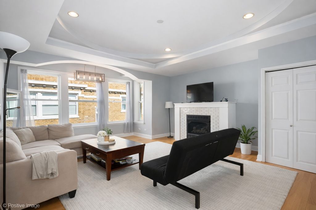 WELCOME HOME to this beautiful top-floor 2 bed / 2 bath condo in one of Rogers Park's most desirable locations. This stylish unit blends modern updates with vintage charm and features hardwood floors, tray ceilings, recessed lighting, and a cozy gas fireplace. The updated kitchen offers quartz countertops and backsplash, stainless steel appliances, ample cabinet space, and room for a kitchen table. The bright open living/dining area is filled with natural light, making it perfect for everyday living and entertaining. The spacious primary bedroom includes a renovated en-suite bath with jet tub and elegant tilework, creating a spa-like retreat. A second generously sized bedroom near the foyer works well as a guest room, office, or additional living space. The home also features in-unit laundry for added convenience. Additional amenities include extra storage and a bike room in the basement. Pet-friendly building allowing cats and dogs up to 50 lbs. (max 2). Located in a charming vintage courtyard building with a fountain on Lakewood Ave, just 2 blocks from the lake and close to shops, restaurants, grocery stores, and transit. Easy access to Sheridan Rd buses and the CTA Red Line at Morse (about 1.5 blocks away). Enjoy everything Rogers Park has to offer including the Glenwood Arts District, seasonal markets, festivals, public art, and beautiful lakefront parks and beaches.