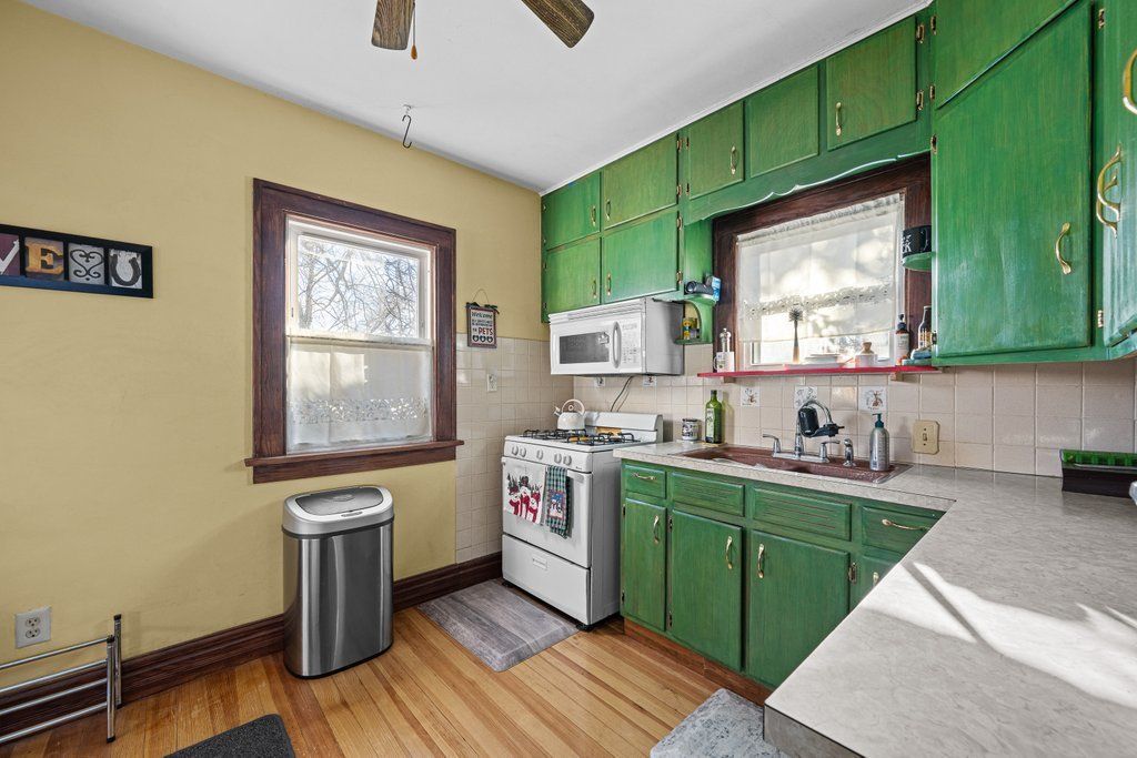 This two bedroom home with a two car detached garage sits on a corner lot and offers a great opportunity for investors or homeowner! A covered front porch leads into a bright living room filled with natural light and classic woodwork. The main level also features a formal dining room and a kitchen with ample cabinet space and tile backsplash. Upstairs you'll find two spacious bedrooms, both with walk-in closets, along with a full bathroom featuring tile accents and convenient linen storage. The basement includes a three-quarter bathroom and additional space for storage or future use. Outside, enjoy the fenced backyard and detached garage providing plenty of parking and storage. Currently tenant occupied on a month-to-month lease at $1,400/month with the tenant paying utilities.