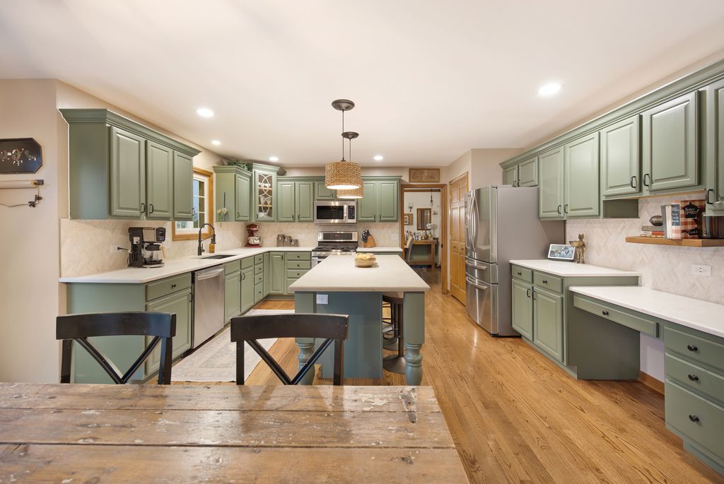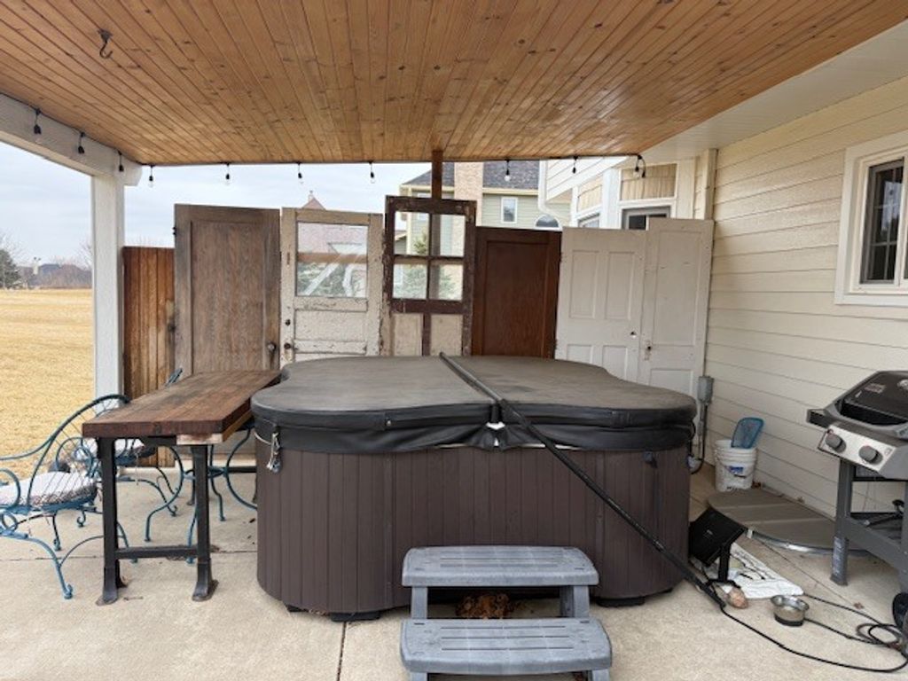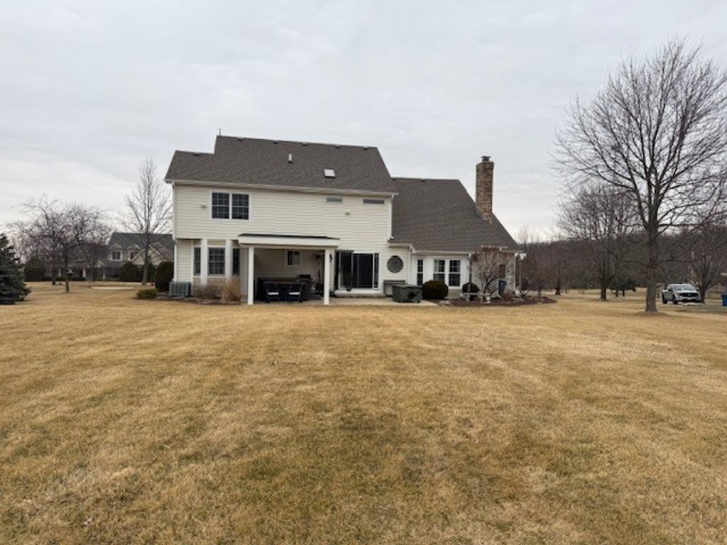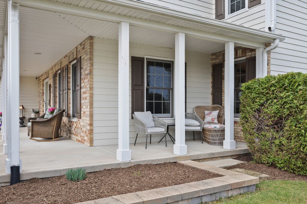 This spacious two-story home with wrap around front porch is set on a beautiful lot, and offers generous living space featuring 5 bedrooms and 3.1 bathrooms. The welcoming foyer has beautiful hardwood flooring that flows throughout the main level into multiple living areas-each designed to accommodate both everyday life and large gatherings. The updated kitchen features stainless steel appliances, modern finishes, abundant cabinetry, expansive countertops, large island with room for seating and a spacious eat-in area -ideal for cooking, casual dining, and entertaining. Adjacent to the kitchen are the formal dining room and the two story family room with a show stopping fireplace. Sliders offer easy access to the yard extending the entertaining outdoors. The primary suite offers a recently updated bathroom & walk-in closet. The fully finished basement boasts a large recreational space, bar space, additional bedroom 5th and full bath-perfect for guests, a teen or in-law suite. Practical touches abound, including ample storage, main level laundry, and a 3-car garage that provides room for vehicles, workshop space(workbench included), or seasonal storage. Outside, the expansive grounds provide privacy and endless possibilities: a large shed for extra storage, mature landscaping, open lawn areas, and a dedicated outdoor living space complete with a hot tub for year-round relaxation. Whether you're seeking comfortable living, space to host, or room to grow and personalize, this home combines modern updates and timeless appeal.