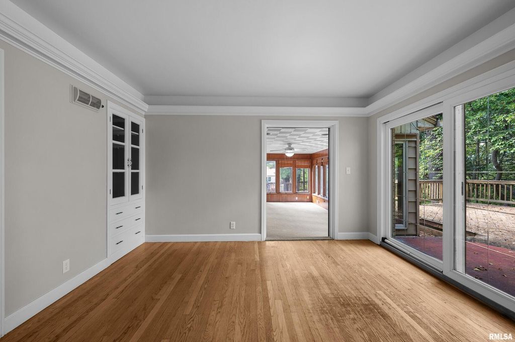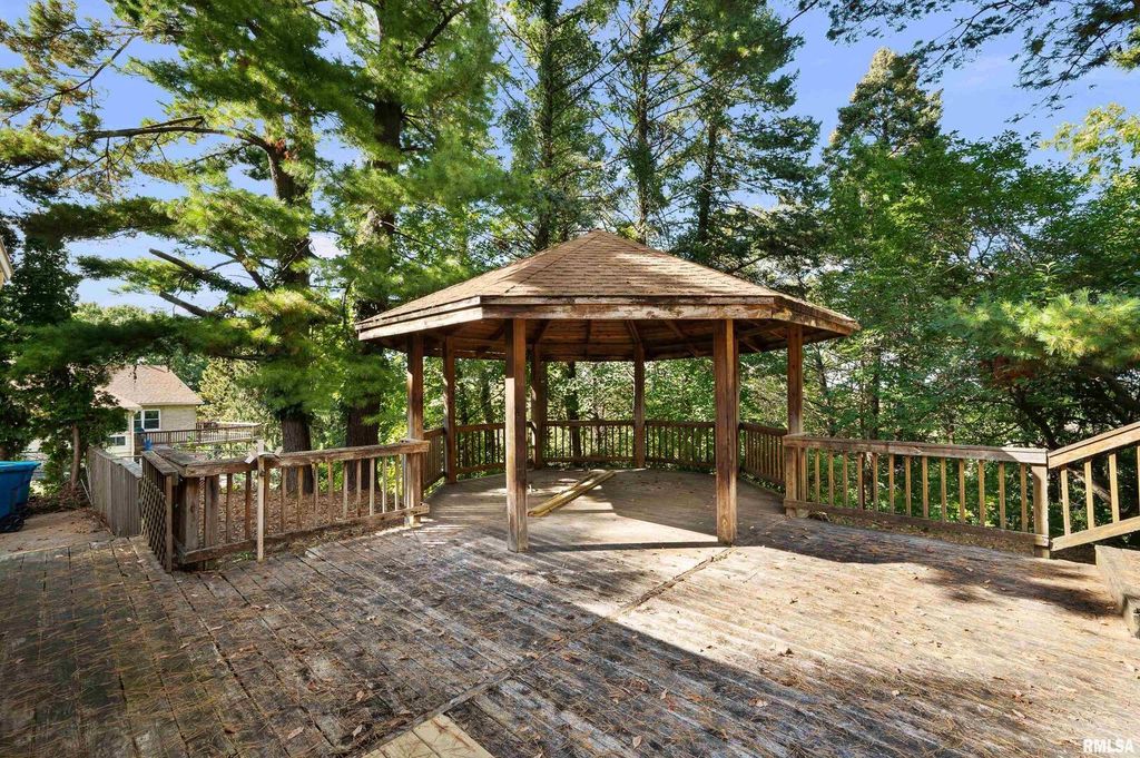 Come check out this very secluded East Moline ranch home. Surrounded by an acre of woods and greenspace, its sits on top of the 7th street bluff with seasonal views of the Mississippi River. Solid brick construction, with multiple bay windows as well as daylights allowing a ton of natural light inside. HW floors throughout the living room & bedrooms with tiled floors & solid surface counter tops in the kitchen area. All the bedrooms are a nice size, with a full bathroom off of the primary. The garage is a true 3 car, plus an exterior parking slab for guests. In the backyard you have a HUGE two tiered 50x40 deck with a built in gazebo surrounded by a fenced in yard. The basement is unfinished and ready for the new owners finishing touches, there is a a lot of space for the money & move in ready!