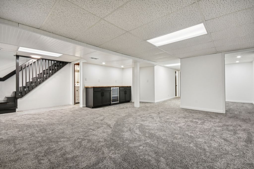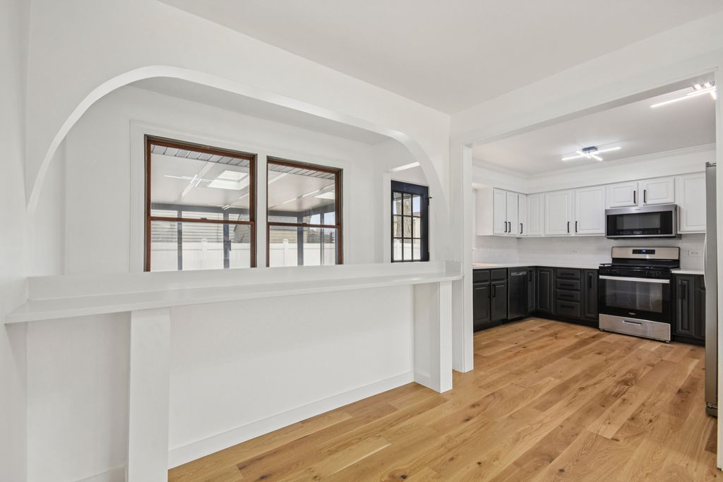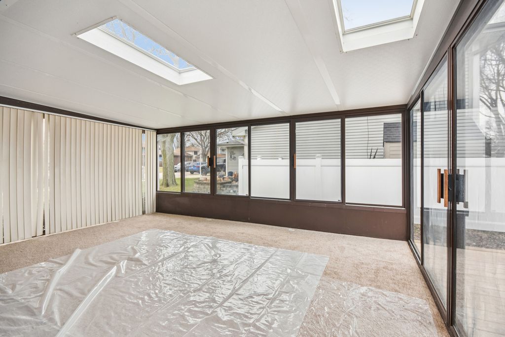 Multiple offers received, highest and best due Sunday 3/15 by 7pm, with decision on Monday. Welcome to this stunningly remodeled Western Trails brick ranch in the heart of Carol Stream, where high-end modern finishes meet everyday comfort and functionality. Step inside to a bright open-concept layout highlighted by gorgeous new wood flooring, designer lighting, and a striking custom architectural feature wall that anchors the living space. The chef-inspired kitchen features sleek quartz countertops, a deep farmhouse sink, premium stainless steel appliances, and a custom quartz breakfast bar that seamlessly connects the kitchen to the dining area-perfect for both daily living and entertaining. The main level features three bedrooms and a beautifully remodeled spa-like bathroom. The primary bedroom includes its own private access to the bathroom, creating a convenient and semi-private retreat, while the two additional bedrooms are located just down the hall. The finished lower level expands your living space with a spacious recreation room featuring built-in shelving and a sleek dry bar with beverage fridge, ideal for entertaining. This versatile level also includes a fourth bedroom, full bathroom, private home office, dedicated laundry room, and ample storage. Relax in the bright three-season room, offering an easy transition to the outdoors and convenient access to the attached 2-car garage. Major updates add peace of mind, including new HVAC brand-new siding, gutters, and Energy Star certified doors (2026), Hot Water Heater (2023), windows (some 2026), resurfaced deck (2026) Roof (2022) along with beautifully remodeled (2026) bathrooms and designer touches throughout. Move-in ready and thoughtfully upgraded, this home blends modern style with flexible living space inside and out. Schedule your showing today before you miss out on this stunning turn key ranch.