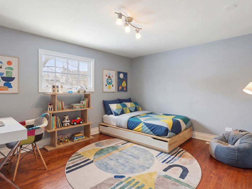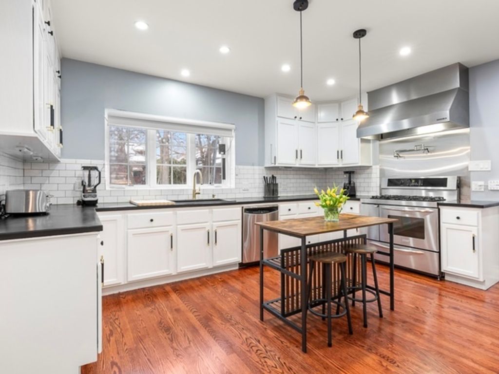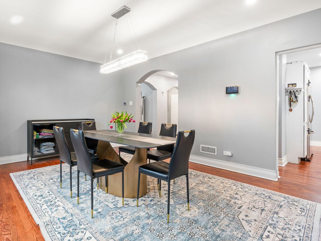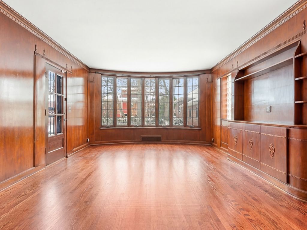 Welcome to 9950 S Hamilton Avenue, a classic English Tudor blending timeless elegance with modern convenience ideally located in the heart of Beverly. This beautifully maintained five-bedroom, three-bath residence offers generous living spaces, thoughtful upgrades, and exceptional character throughout. The main level opens to a gracious foyer highlighted by a striking wrought-iron staircase, leading into a sun-filled living room featuring brand-new Andersen floor-to-ceiling windows and an original stone wood-burning fireplace. A spacious formal dining room flows seamlessly into the updated kitchen, complete with custom cabinetry, butcher block countertops, stainless steel appliances, subway tile backsplash, and a convenient pot filler. Just off the dining room, a cozy family room showcases original mahogany wall paneling and a stunning seven-panel bow window overlooking the backyard. A fully updated bath is conveniently located near the kitchen, along with an inviting three-season room featuring a double utility sink, perfect for a craft room, secondary prep kitchen, or flexible workspace. Double French doors open to a concrete patio, creating a seamless indoor-outdoor connection ideal for entertaining. Ascending the staircase beneath a striking chandelier, the second level offers five spacious bedrooms and two full bathrooms. The spacious primary suite features a brand-new ensuite bathroom with a double vanity, curbless shower, soaking tub, and built-out wardrobe. One of the four secondary bedrooms includes its own private ensuite bath, making it ideal for a guest suite, in-law arrangement, or nanny quarters. Three additional generously sized bedrooms complete the upper level. The fully finished basement provides even more living space with a large recreation room, wood-burning fireplace, laundry area with double washer and dryer, and ample storage. With numerous mechanical updates from newer HVAC systems, water heater, windows, roof, and more! Located within walking distance to neighborhood schools, parks, shopping, and public transportation, this exceptional Beverly home offers classic architecture, modern comfort, and an unbeatable location.