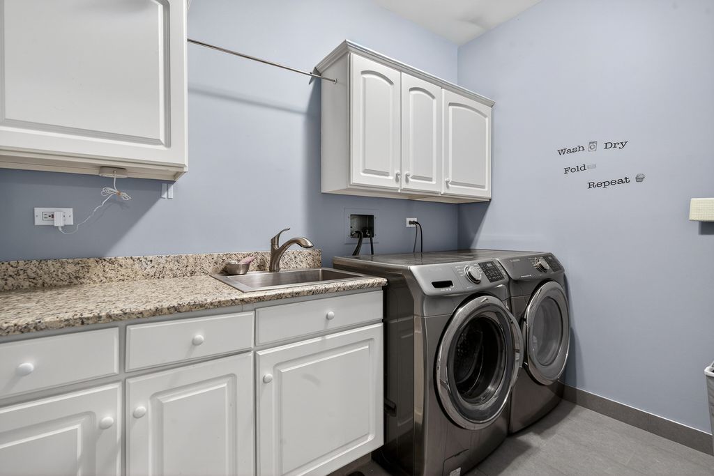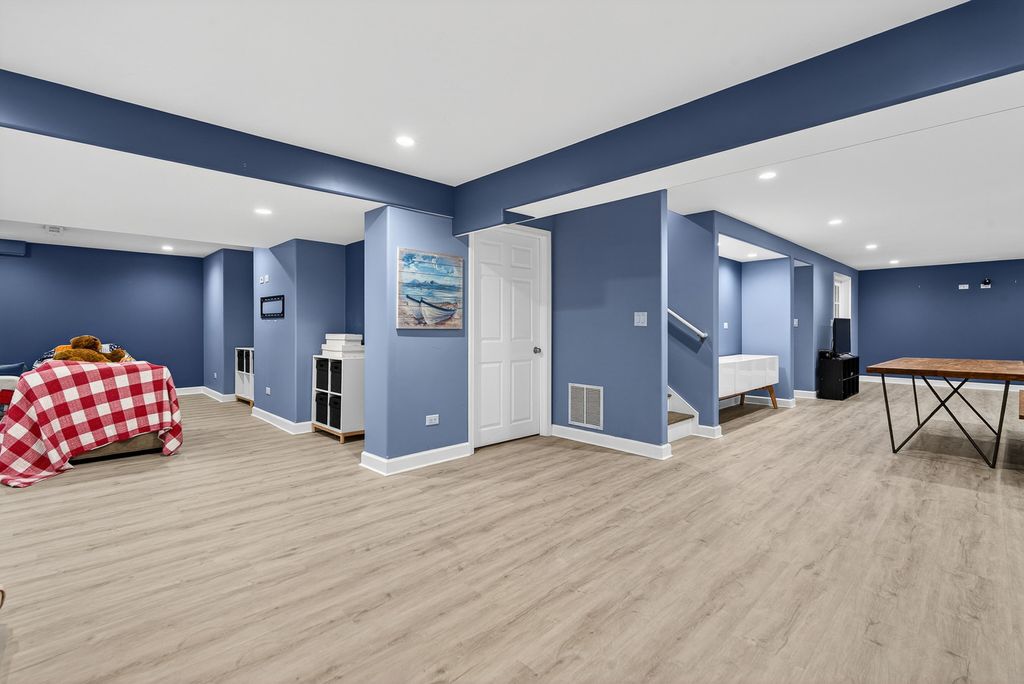 Beautifully updated 4 bed, 3.5 bath home with a 3-car tandem attached garage and a fully finished basement! This move-in ready home has been extensively remodeled since 2017. The main level offers a spacious and functional layout with a family room featuring a fireplace that flows seamlessly into the updated kitchen. The bright white kitchen includes stainless steel appliances, a large island with breakfast bar, table space, and a pantry. A formal living room, separate dining room, half bath, and a remodeled laundry room with sink and storage cabinets complete the main floor. All four bedrooms are located on the second level. The primary suite features dual closets including a walk-in closet and a stunning en-suite bathroom with dual vanity, walk-in shower, and separate soaking tub. Three additional bedrooms share a well-appointed hall bath with dual vanity and walk-in shower. The finished basement expands the living space with a large recreation room, office, and a third full bath with walk-in shower and sauna. Enjoy outdoor living in the backyard with a brick paver patio-perfect for relaxing or entertaining. Conveniently located close to shopping, dining, multiple parks, and with easy access to I-90. Zoned to highly rated District 220 schools.