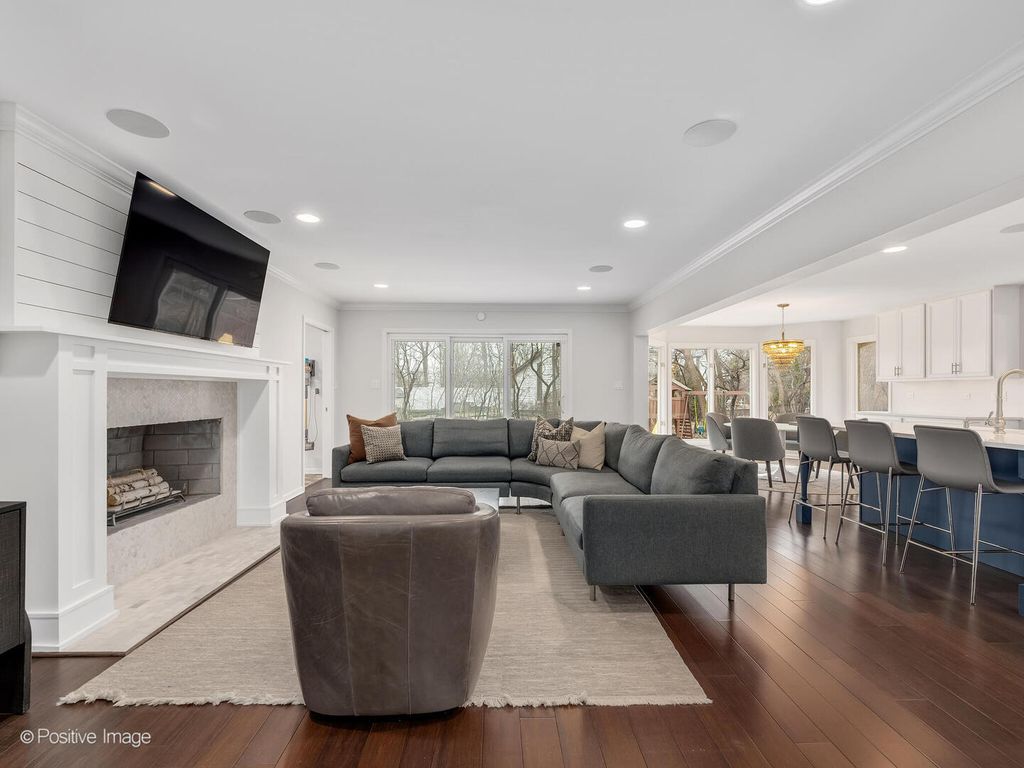 Set at the end of a picturesque cul-de-sac in Oak Brook's premier Forest Glen subdivision, this beautifully appointed 6-bedroom, 3.5-bath all-brick residence offers 4,661 square feet of finished living space - thoughtfully updated and designed for both everyday living and elevated entertaining. A dramatic two-story foyer with sweeping staircase and abundant natural light creates an impressive entrance. Hardwood floors extend throughout the entire first level, complemented by refined lighting and timeless finishes that give the home a sophisticated yet inviting aesthetic. The formal living and dining rooms provide elegant entertaining spaces, while the expansive family room with fireplace and renovated wet bar flows seamlessly into the beautifully updated kitchen. The kitchen features Cambria quartz countertops, stainless steel appliances, abundant cabinetry, and a striking oversized island that anchors the space - ideal for gatherings large and small. A private first-floor office filled with natural light offers an exceptional executive work-from-home setting. Upstairs, bedroom proportions are outstanding - generously sized rooms rarely found in today's market. The primary suite serves as a true retreat with a spacious walk-in closet and a fully renovated bath showcasing white quartz finishes and timeless detailing. Custom closet systems enhance organization throughout the upper level. The basement was completely renovated in 2022 and showcases impressive ceiling height, modern painted ceilings, recessed lighting, new carpeting, an additional bedroom, full bath, and extensive storage. A waterproofing system with transferable warranty provides additional confidence. This level offers tremendous flexibility for recreation, guests, fitness, or extended living. Exterior improvements are equally notable. Professionally designed landscaping and exterior lighting enhance curb appeal and create a beautiful evening presence. The expansive paver patio and deep backyard, framed by mature trees, provide a private setting ideal for outdoor entertaining and relaxation. Forest Glen offers an unmatched lifestyle with immediate access to tennis and pickleball courts, basketball court, gazebo, fishing ponds, walking paths, playground, and expansive green space. Notably, Forest Glen was the first Oak Brook neighborhood selected for comprehensive community infrastructure investment, including water main replacement, sewer system rehabilitation, street resurfacing, and additional improvements - further strengthening long-term value and community appeal. Minutes from Oak Brook Mall, Elmhurst City Centre, Elmhurst Hospital, Fullersburg Woods, and major highways I-290 and I-294. Located within award-winning Elmhurst District 205 schools: Jackson Elementary, Bryan Middle School, and York High School. A rare opportunity to own a meticulously maintained and extensively updated home in one of Oak Brook's most distinguished communities.