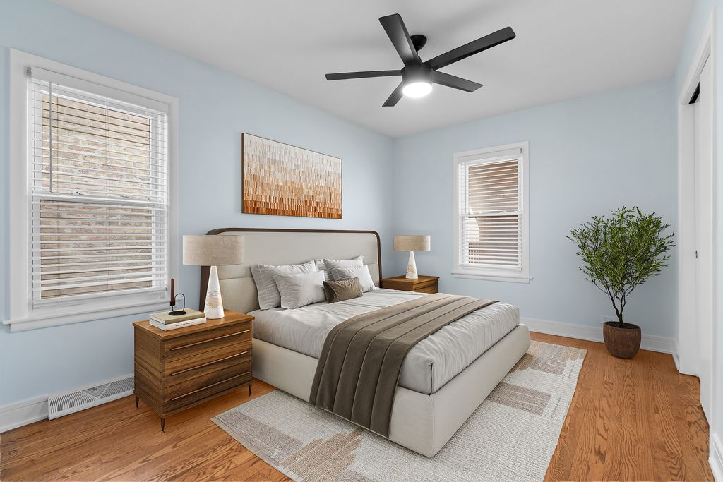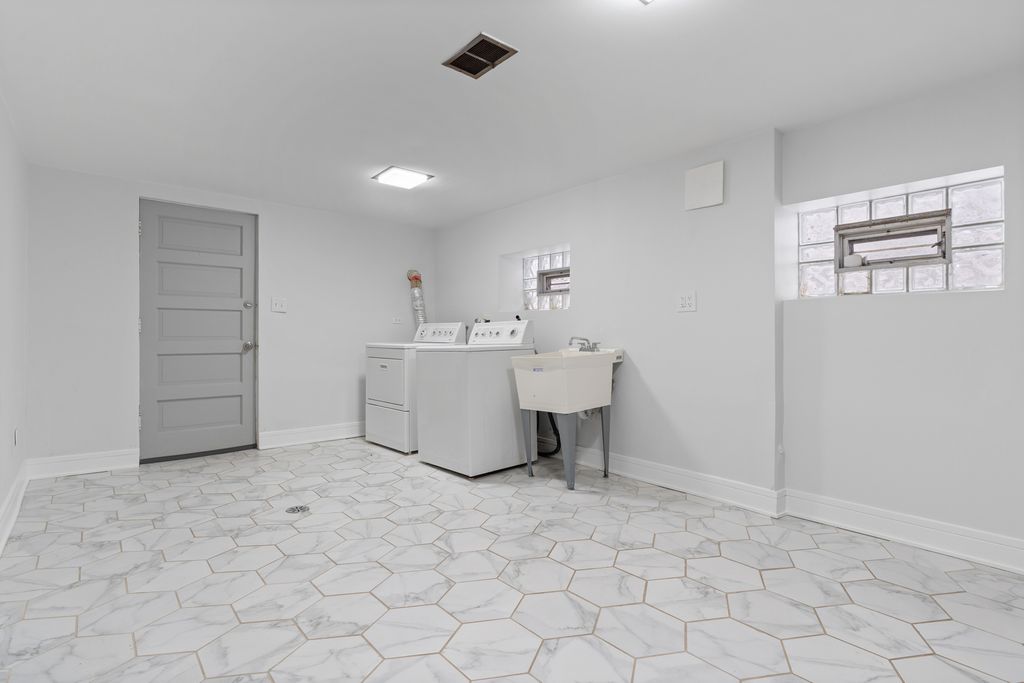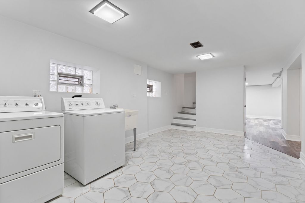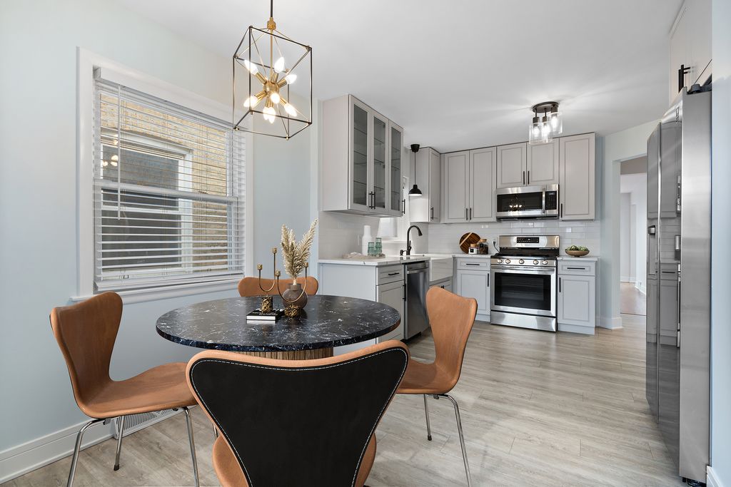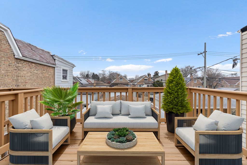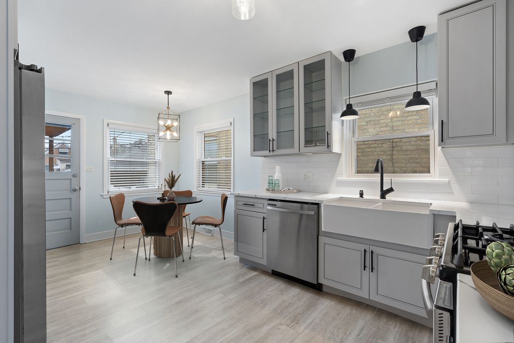 Beautifully updated 5-bedroom, 3-bath home in the popular Jefferson Park neighborhood. Gleaming hardwood floors and large windows welcome you into the main living area with warmth and natural sunlight. The kitchen is a chef's dream, featuring crisp grey cabinetry, quartz countertops, classic subway tile backsplash, stylish light fixtures, stainless steel appliances, and a charming farmhouse sink, plus enough space for an eat-in dining area. Enjoy seamless indoor-outdoor living as the kitchen opens out to a stunning multi-level deck, the perfect setting for entertaining guests or relaxing in the evenings. Two bedrooms conveniently located on the main level, adjacent to a full bath. In fact, every level features a full bathroom, all boasting high-end Kohler hardware and fixtures. Upstairs, you'll find two more spacious bedrooms and a spa-like full bathroom with walk-in shower, as well as walk-out access from the back bedroom to a private deck. The lower level offers new flooring throughout, a massive laundry room with washer/dryer, and an open recreation/living area-plus a separate room perfect as a 5th bedroom, home office, or extra storage. Outside, an enclosed large backyard with privacy fence awaits, complete with a two-car garage and newer deck. Easy access to I90-94 expressway, Metra stops and O'Hare, plus nearby parks and restaurants, this exceptional home combines comfort, style, and convenience in an unbeatable location. Don't miss your chance to make it yours!