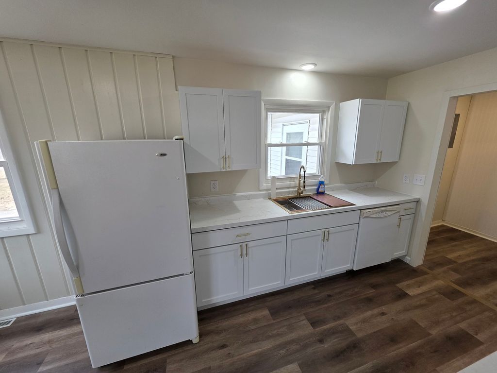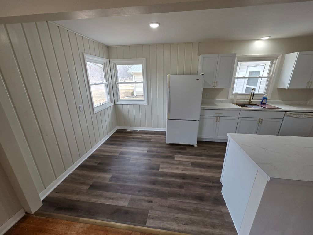 Nicely remodeled 3 bedroom ranch home. Mostly newer windows throughout. New kitchen cabinets, counter top and sink. New flooring in kitchen, dining area and family room. Remodeled full bath(2026). Freshly painted interior. New stove and microwave (2026). Main floor stackable laundry area. Updated plumbing. Ceiling fans. Hardwood floors in living room and bedrooms.