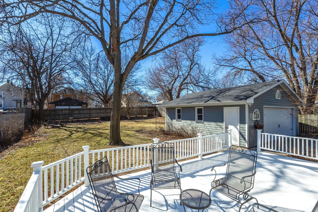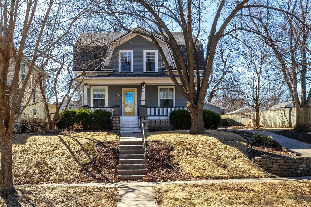 Absolutely charming Dutch Colonial Revival style home that has been well maintained, updated & ready for you to move right in! Enjoy the combination of beautiful original detail like original hardwood floors & trim throughout along side many beautiful updates! Step inside from the covered front porch (with porch swing to enjoy the upcoming Spring weather) and discover an entry way leading to the living room which features wood floors with updated remote gas fireplace with brick surround & wood mantle. Next you will find the dining room separated by an original solid wood pocket door, wood floors & large windows to let the light flow. Remodeled Kitchen is a chef's dream with ample cabinetry & counter top space to prep meals featuring white glass front cabinetry, granite counter tops, tile backsplash, gas range/oven, hood fan w/exterior venting, stainless steel appliances, walk-in pantry & functional island to gather around with solid cherry wood top. Enjoy the convenience of a main floor bath with classic claw foot tub for aesthetics. Upstairs you will find 3 large size bedrooms with beautiful wood floors and walk-in closets plus a lovely remodeled bath with a stunning tile & glass surround shower plus full size washer & dryer for convenience. A 3-season room jets off the bedroom offering many options for use such as an office, reading room, craft room, etc. with views of the backyard. The walk-up attic gives you even more space to potentially finish as you wish. The basement is also a blank slate with plenty of storage space & has been professionally waterproofed. The large deck & fenced back yard gives you plenty of outdoor entertaining space. Oversized 2 car garage gives you room for vehicles or whatever you need to store. Hurry & book your showing today!
