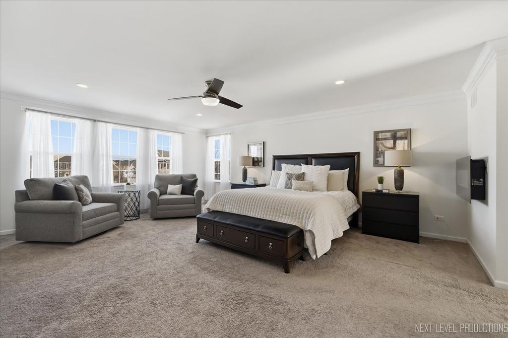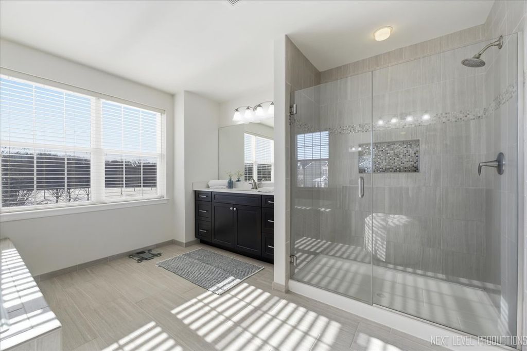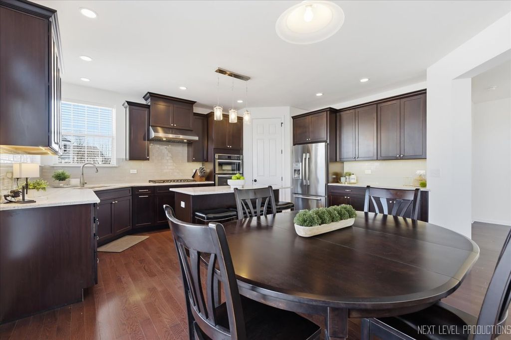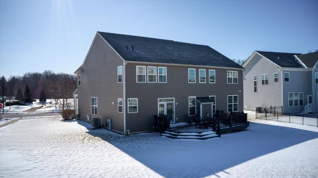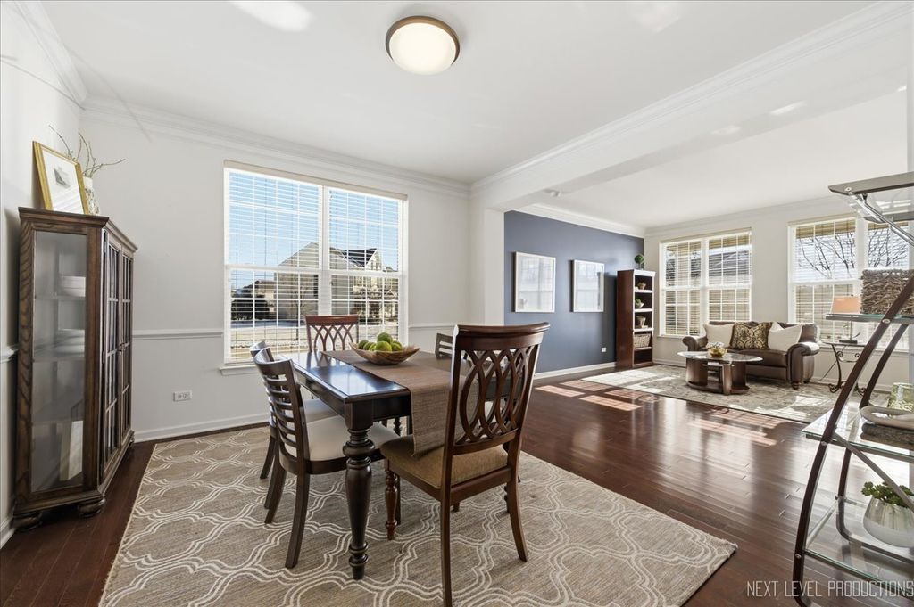 Welcome to this stunning 4-bedroom, 2.5-bath home in the desirable Bowes Creek community of Elgin! Offering 3,343 square feet of beautifully designed living space, this home features a dramatic two-story foyer and family room, creating a bright and open feel from the moment you step inside. The main level showcases rich hardwood flooring throughout and an ideal open-concept layout perfect for both everyday living and entertaining. Enjoy a private office for working from home, along with formal living and dining rooms for added versatility. Upstairs, you'll find a convenient second-floor laundry room and spacious bedrooms designed for comfort. Step outside to a custom deck overlooking a large corner lot and park directly across from home! A three-car garage provides ample storage and convenience.This is the perfect blend of space, style, and functionality in a sought-after neighborhood with Burlington 301 School District!