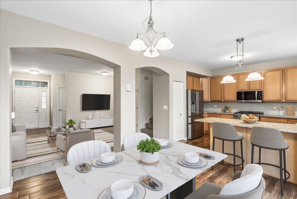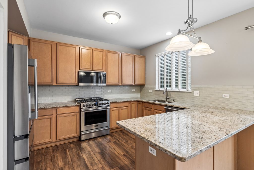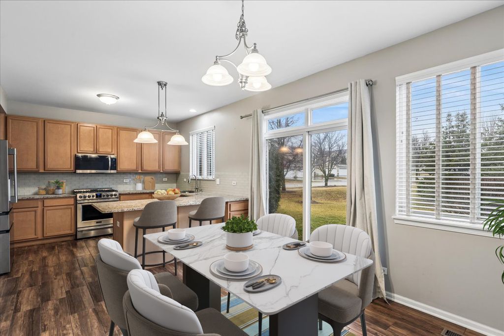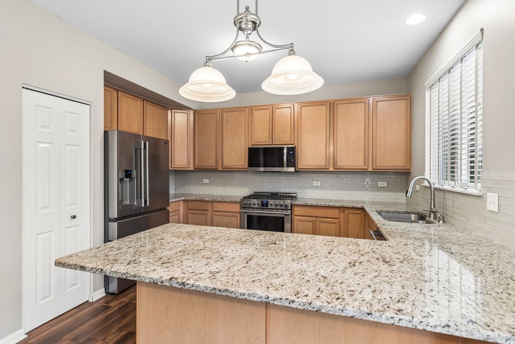 Beautiful 2bd+Loft/2.5bth two-story townhouse w/ tons of interior living & green space. As you enter the front door you are immediately welcomed by a spacious, open floorpan with lots of natural light. You will love to cook & entertain in the upgraded kitchen featuring granite countertops, glass backsplash, breakfast bar, 42" cabinets, pantry, newer SS appliances (2021) & tile flooring. The kitchen flows into the dining room & has large sliders leading outside w/ views out to green space & pond/wetlands to the North. The large primary bedroom has a HUGE walk-in closet & full en-suite bath has a custom walk-in shower, soaker tub, & dual vanity w/ granite countertop. The loft space provides the perfect flex space for a home office, workout area, or play room. Full size laundry(2021)/mudroom off the 2-car garage. Newer hot water heater (2022) & roof (2025)! Ample visitor parking right across the street! Easy access to RT134, RT120, lots of parks, water, shopping & nearby amenities! Quick close available!