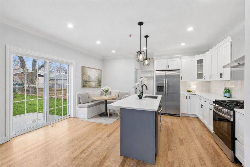 Welcome to 10832 Massasoit Avenue, a beautifully designed new construction home completed in 2025. This thoughtfully crafted 4-bedroom, 2.5-bath residence offers modern finishes, functional spaces, and the peace of mind that comes with brand-new construction. A charming front porch welcomes you into the home, where a flexible front room provides the perfect space for a home office, playroom, or additional sitting area. The main level opens into a bright, open-concept living and dining space anchored by a custom architectural wood accent wall with built-in shelving and electrical for seamless TV installation-an eye-catching focal point for everyday living and entertaining. The stylish kitchen features classic white shaker cabinetry, quartz countertops, a glossy tile backsplash, and stainless steel appliances, blending timeless design with modern convenience. Just off the attached two-car garage, a practical mudroom offers built-in shelving, a coat closet, and a convenient half bath to help keep everyday life organized. Upstairs, you'll find four spacious bedrooms, each with its own walk-in closet. The primary suite offers exceptional storage with two additional closets, creating a true retreat. A conveniently located second-floor laundry room adds ease and efficiency to daily living. The unfinished basement offers excellent potential with a rough-in for a future bathroom-ideal for creating additional living space, a recreation room, or a home gym. Ideally located in Chicago Ridge, this home is just a short walk to Commissioners Park and only minutes from the Chicago Ridge Metra station for convenient commuting. Nearby shopping and dining options include Mariano's and Cooper's Hawk at 111th and Cicero, offering everyday convenience just moments from your door.