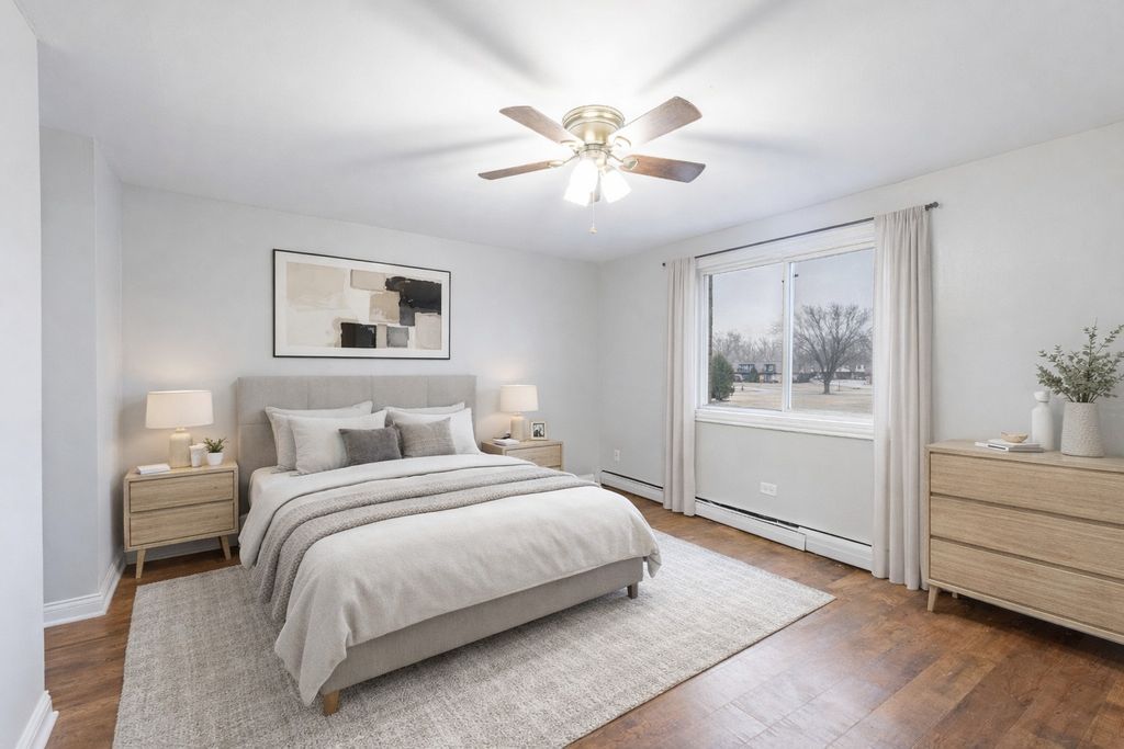 Move-in ready and freshly painted, this spacious condo offers 2 bedrooms and 1.5 bathrooms, including a primary bedroom. Enjoy a cozy fireplace in the living room and a private balcony. Located in a well-maintained subdivision featuring beautiful green courtyards and a community pool, this is one of Riviera Regal's desirable models. Conveniently situated near Moraine Valley College, the Metra station, La Grange Road, major interstates, and nearby forest preserves, providing easy access for commuting and recreation.