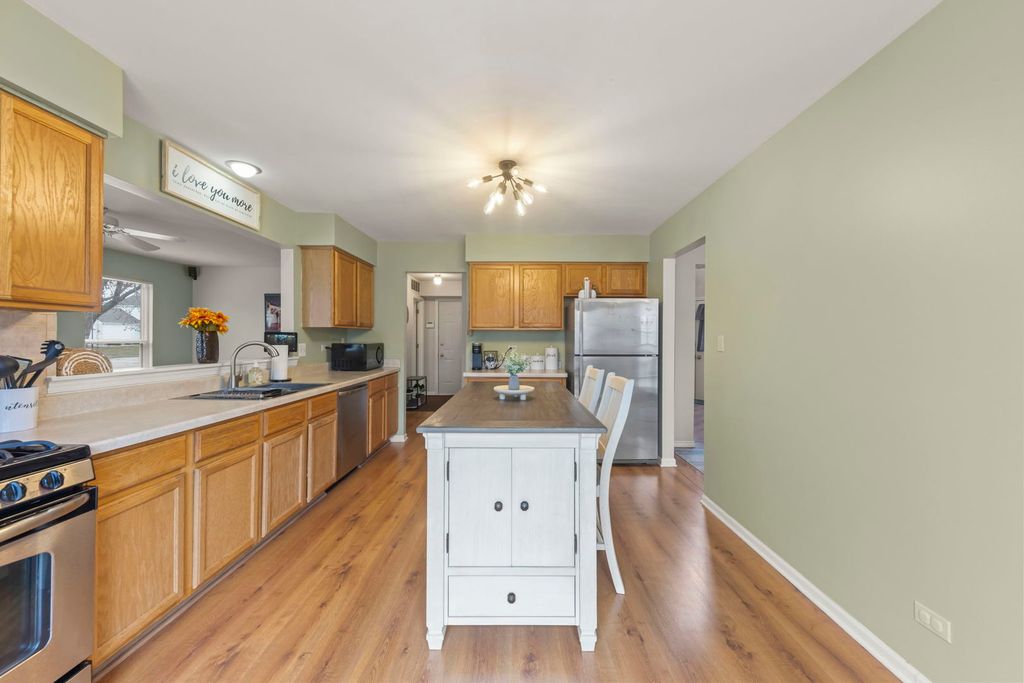 BEAUTIFULLY MAINTAINED 3 BED/ 2.5 BATH, OPEN CONCEPT HOME WITH ABUNDANT STORAGE, FINISHED BASEMENT, AND NUMEROUS UPDATES! The bright, inviting vaulted entryway opens to a spacious living room that flows seamlessly into the dining room, large kitchen, and comfortable family room-perfect for entertaining. Highlights include large windows, stainless steel appliances, a spacious master bedroom with an expansive walk-in closet, and a master bathroom featuring a separate tub and shower with a dual sink vanity. Two additional generously sized bedrooms provide ample space for family or guests. The finished basement offers a massive recreation room ideal for relaxing, along with room for a workout area, crafts, or play space, plus a crawl for extra storage. The oversized, fully fenced backyard is ideal for kids and pets and features a paver patio, sidewalk, tool shed, and mature trees for added privacy. Major updates include a new furnace and driveway in 2023, as well as a new AC unit in 2022. An AT&T security system is also in place and transferable to the new owners. Microwave in kitchen and Surround Sound System in family room convey with the home. Perfect for starter families, retirees, or single individuals looking for comfort and convenience. Home is in excellent condition, but Seller looking to sell "As-Is" and Close in April (flexible).