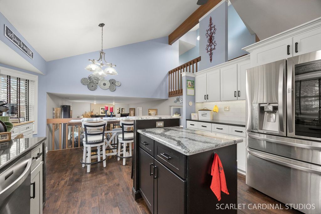 Remodeled 3 bed, 2.1 bath home with basement, in a cul-de-sac, in highly desirable district 204!! Gorgeous hardwood throughout, nicely painted, white trim throughout!! NEW kitchen with white cabinetry with crown molding, complimentary subway tile backsplash, Cambria Quartz countertops & stainless steel appliances!! Breakfast nook space too!! NEW powder room with modern vanity & wainscoting!! Living room & dining room have tons of natural light & vaulted ceilings!! Spacious family room hosts a beautiful fireplace & mantle!! Upper level hosts primary bedroom with vaulted ceilings & huge walk-in closet, along with a NEW bathroom complete with double vanity, lighted mirror, & tiled walk-in shower!! Two more large bedrooms & second full NEW bathroom with contemporary sink, shower with niche, & white marbled tile!! Backyard is home to brick patio (laid by same company that did the brick concourse for the Chicago Cubs!) & concrete curb surrounding patio & winding walkway!! NEWer Gilkey windows throughout, patio door as well!! NEW washer & dryer 2024!! NEW paved driveway!! Walk to elementary school, middle school, & high school!! Eola Community Center and multiple parks nearby!! Very short drive to Rt 59 train station, restaurants, & shopping!!