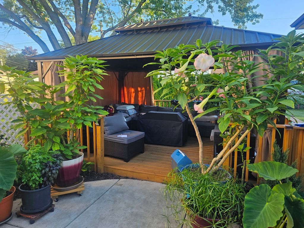 Beautiful split-level home with 2 car garage and open floor plan on the main level. Gorgeous kitchen with huge island and top-of-the-line appliances. Dark cherry cabinets, quartz countertops, ZLINE 6 burner stove and dishwasher. Custom build, glass & marble mosaic backsplash above the stove. Two updated bathrooms. The main bath features a custom-built shower and new shower panel system with LED light display. The downstairs bathroom, remodeled in 2024, features jacuzzi bathtub, new vanity, fixtures, and tiles. Newer recess lighting throughout the main floor and LED lighting underneath the kitchen cabinets and island. Most flooring was replaced in 2023 with waterproof wood-based laminate. Newer vinyl windows and door. Reverse osmosis water filter included. Garage is compatible for electric vehicles. Fully fenced backyard includes beautiful gazebo (2025). Laundry room with kitchenette area in the lower level. Washer & dryer replaced in 2023. Central Air replaced in 2018, furnace in 2015. Newer concrete driveway installed in 2017. Family room in lower level is currently used as a 4th bedroom. This home is well-maintained and ready for new owners.