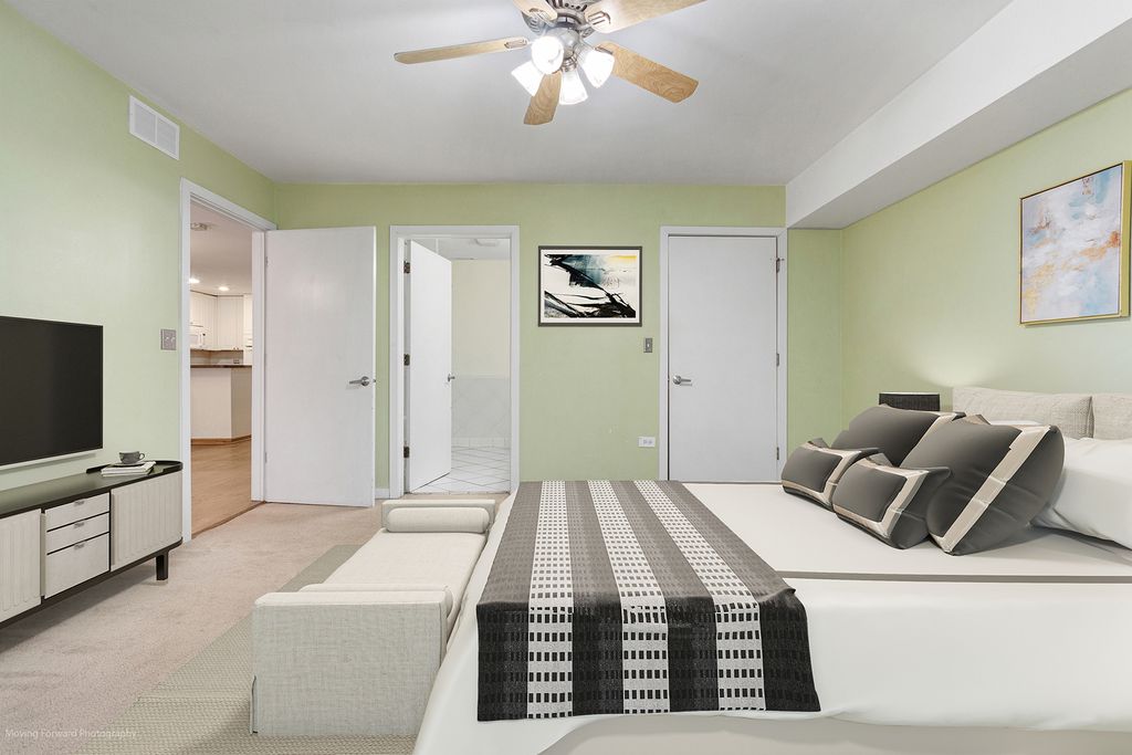 Discover this welcoming end unit tucked inside a secure gated community. Bask in expansive living and dining areas crafted with an open floor plan, relax on the charming front patio made for peaceful outdoor moments, and enjoy spacious bedrooms plus an attached garage for convenience. The updated kitchen gleams alongside polished hardwood floors throughout the main spaces, while in-unit laundry simplifies your daily routine. Escape to the generous master bedroom featuring walk-in closets and a cozy fireplace. This pet-friendly neighborhood invites you to enjoy serene atmosphere and admire beautifully manicured courtyards. Located in the lively South Loop, you're just moments away from vibrant art fairs, the shimmering lake, captivating museums, unique boutiques, and delightful dining spots. Make this your perfect home today.