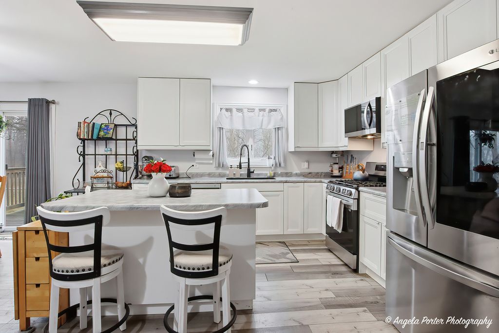 Enjoy peaceful living near the Chain O'Lakes in this well-maintained ranch home located just moments from Spring Lake and Petite Lake in Unincorporated Antioch. Situated on over a half-acre made up of three combined parcels, this property offers a relaxing retreat-like setting while still being close to everything the area has to offer. A boat dock may be available (check with HOA), making it easy to enjoy lake life all season long. The home features convenient single-level living with a bright and open layout. The spacious kitchen includes an island, ample cabinetry, and maintenance-free luxury vinyl plank flooring that continues into the living areas. The living room offers vaulted ceilings and large windows that bring in plenty of natural light, creating an open and inviting space. The primary bedroom includes a private bath and two closets for extra storage, while two additional bedrooms provide generous space and large closets. The partially fenced yard is perfect for pets or outdoor activities, and the welcoming front porch offers a great place to relax and take in the quiet surroundings. The attached two-car garage provides additional workspace or storage and includes a partially finished attic with pull-down stairs. Numerous updates have already been completed, including new windows (2022), hot water heater (2025), garage door (2026), roof and furnace (approx. 2016), water softener (2018), fence and deck (2019), and kitchen appliances (approx. 2019). Commuters will appreciate the proximity to the Antioch Metra station, while outdoor enthusiasts will enjoy the many recreational opportunities throughout the Chain O'Lakes area. Located near marinas, boat launches, forest preserves, and the charming shops and restaurants of downtown Antioch, this property offers the perfect balance of lake-area recreation and peaceful everyday living.