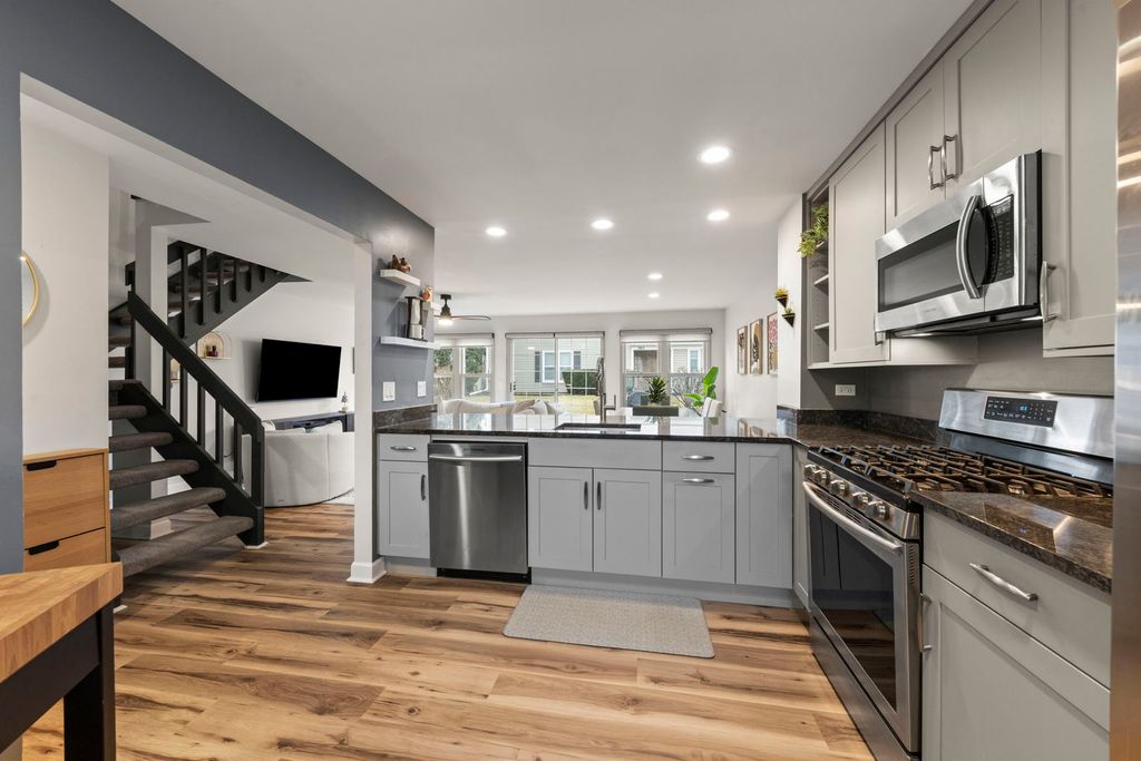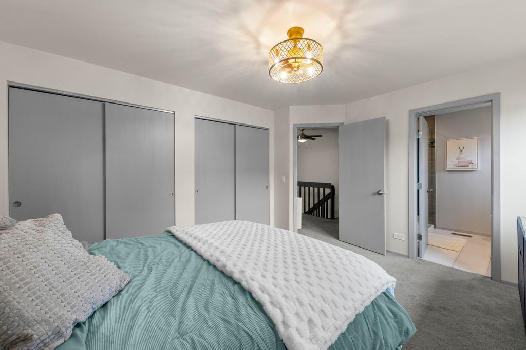 Multiple Offers Received. Highest & Best due Monday, April 6th at 9am. Turn-key style meets everyday comfort in this beautifully updated two-story townhome in the highly desirable Hampton Subdivision of Elk Grove Village, just steps from Fox Run Golf Links! Offering 2 spacious bedrooms and 2.5 bathrooms, this home shines with modern finishes and thoughtful upgrades throughout. The stunning kitchen is a true centerpiece, featuring sleek gray shaker cabinetry, granite countertops, a custom tile backsplash, stainless steel appliances, and an open layout that flows effortlessly into the dining area, abundant with natural light and perfect for everyday living and entertaining alike. Fresh, modern updates carry throughout the home, including newer paint, luxury vinyl flooring, and a striking statement staircase. Upstairs, each bedroom enjoys its own private full bathroom, complete with updated cabinetry, granite countertops, and stylish custom tile finishes, creating two comfortable retreat-like spaces. The spacious landing provides the perfect nook for a desk, reading area, or additional furniture. Step outside to a peaceful backdrop of open green space, only a few steps from the 18-hole golf course. Step outside to a peaceful backdrop of open green space just moments from the 18-hole Fox Run Golf Course, offering a rare blend of privacy and scenic surroundings. Ideally located near parks, major highways, and highly regarded Schaumburg schools including Michael Collins Elementary, this home is also just a short drive to some of the area's most popular destinations such as Busse Woods Forest Preserve and Woodfield Mall in Schaumburg. A perfect combination of location, style, and low-maintenance living. This home is ready to impress!