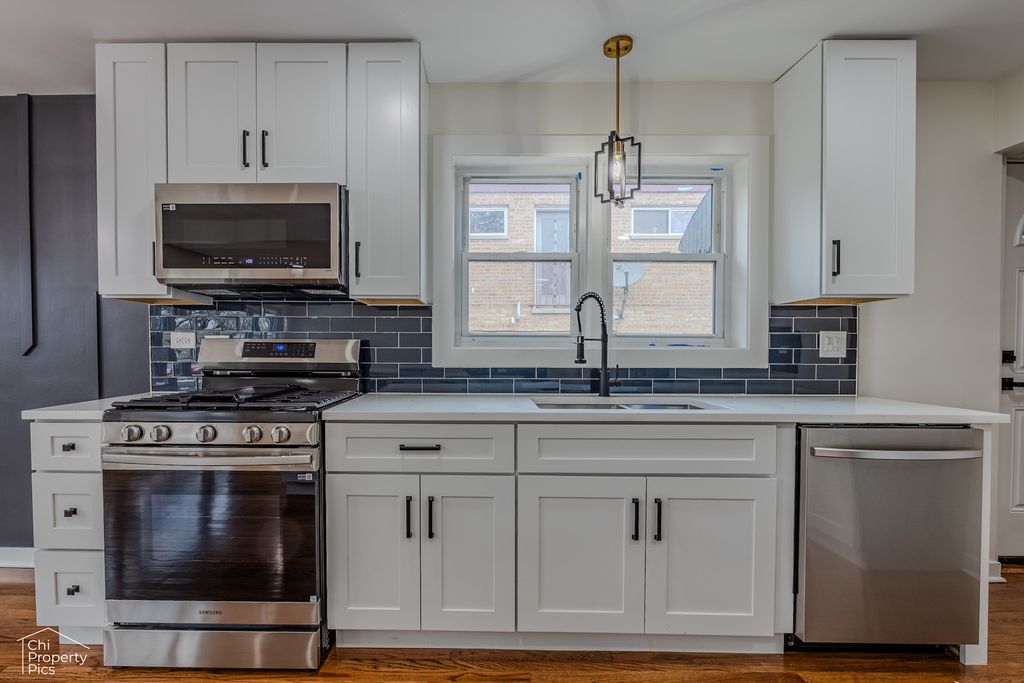 Welcome Home to This Stunning, Fully Renovated Brick Ranch in Evanston! Experience the perfect blend of classic charm and modern luxury in this meticulously renovated brick ranch. Nestled in a sought-after Evanston location and conveniently located steps from the Robert Crown Community Center. It's minutes from great Evanston schools, a variety of shopping, skating, library and easy access to downtown Evanston, Lake Michigan and much more! Step inside to find an open and bright living space, showcasing high-quality finishes throughout. The brand-new kitchen boasts a huge island with stainless steel appliances, quartz countertops and flows seamlessly into the dining area. This home offers 4 comfortable bedrooms and 2 stylish and tastefully updated bathrooms. Additional highlights include refinished hardwood floors throughout, accented by recessed lighting and statement chandeliers and new HVAC. The fully finished lower area is a wow factor with a wet bar, generous sized family room, large laundry and storage room and a large bedroom with a walk-in closet. Outside, you'll love the expansive, deep lot, providing ample space for gardening, entertaining, or future expansion and a beautiful wooden deck and concrete side patio great for private relaxing. A true Evanston gem, ready for new memories!
