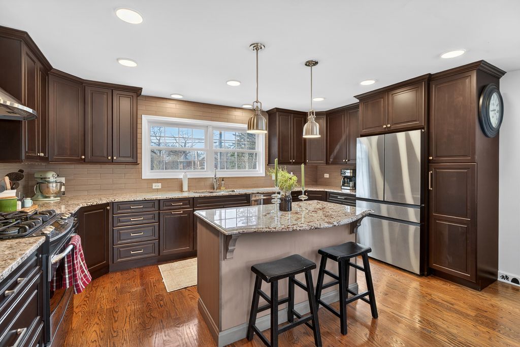 Beautifully updated home set on a professionally landscaped one-acre lot backing to Woodland Park! Designed for modern living and entertaining, the open layout features a stylish kitchen with 42" cabinets, granite countertops, stainless steel appliances, and a large island flowing into bright dining and living spaces with a full wall of windows overlooking the backyard. The upper level offers three spacious bedrooms and an updated bath. Oak hardwood floors run throughout. The lower level includes a versatile rec room, home office space, full bath, laundry room and crawl space. Enjoy outdoor living on the deck and paver patio including firepit, surrounded by expansive green space. Major updates include new roof and concrete fiber siding (2023), newer mechanicals (2017+), new large windows and doors leading to back porch, plus a newly built two-car garage with extensive 2nd story storage, carport, and driveway. Fantastic location within walking distance to parks, Mitchell Pool, and award-winning Wilmot Elementary School, with easy access to downtown Deerfield dining, shopping, Metra, and Deerfield High School. Come and see this wonderful home today! ***Multiple offers received, highest and best offers due by Sunday, March 1 at 5 pm.***