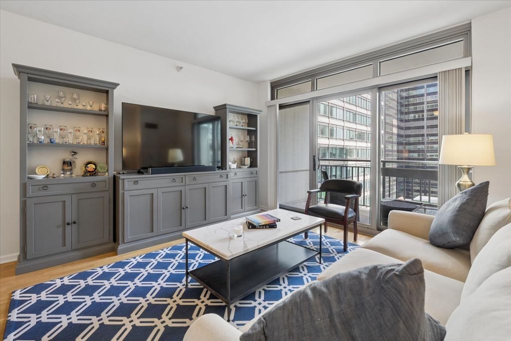 Bright and spacious junior one-bedroom at the highly sought-after Park Alexandria in Chicago's vibrant West Loop. This newly painted unit features hardwood floors throughout and a thoughtfully designed separate sleeping area that offers added privacy and functionality. The open-concept living space is filled with natural light and flows into a large kitchen complete with granite countertops, breakfast bar seating, and generous cabinet storage - perfect for both everyday living and entertaining. Enjoy the convenience of in-unit laundry and oversized closets that provide exceptional storage. Park Alexandria offers full-amenity living with 24-hour door staff, a fully equipped fitness center, expansive sun deck, dog run, party room, and guest suites for visiting friends and family. Parking is available for purchase or rent. Experience the best of West Loop living with renowned restaurants, shopping, nightlife, and public transportation just steps from your door.