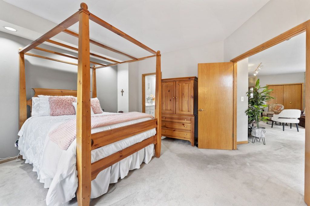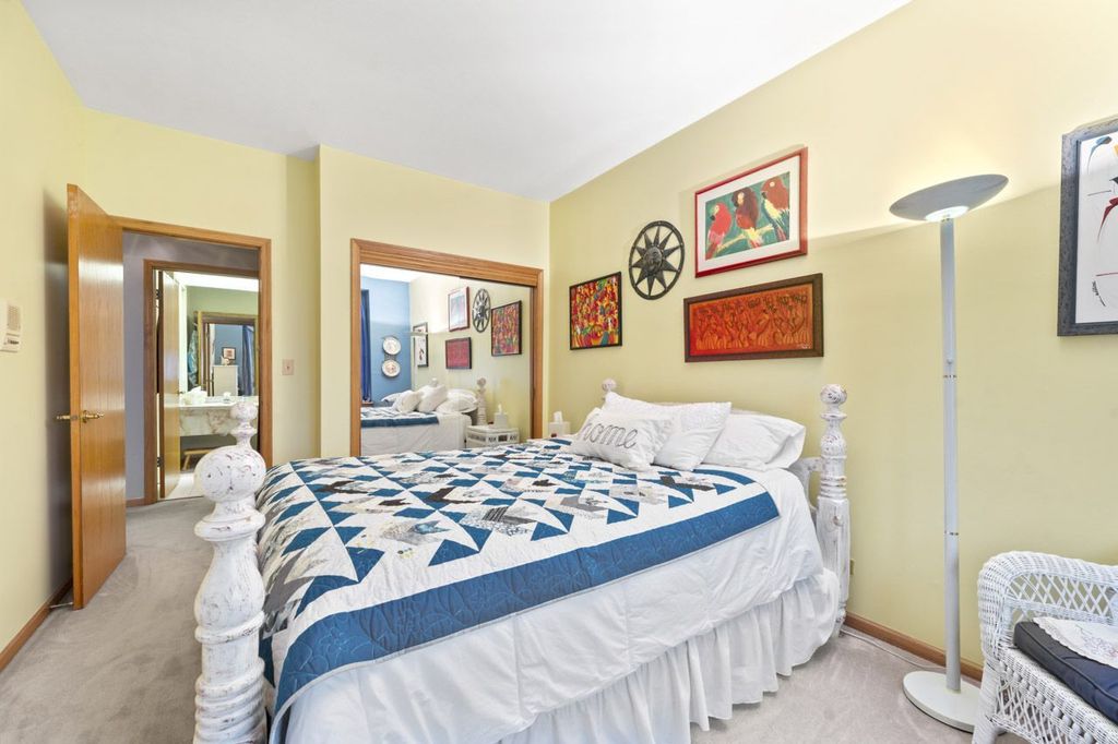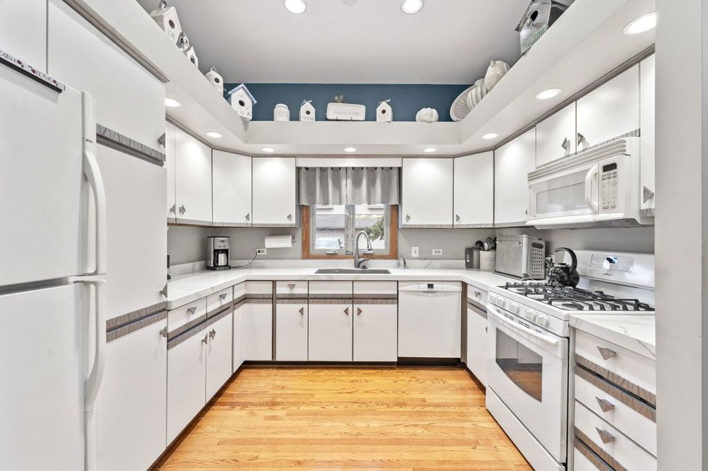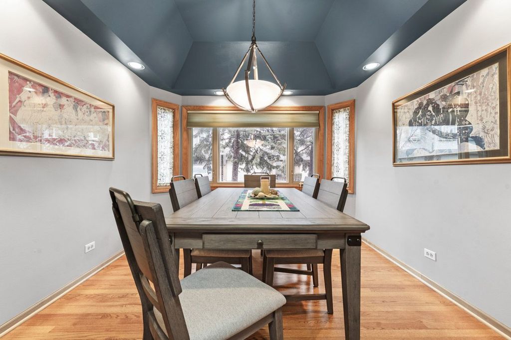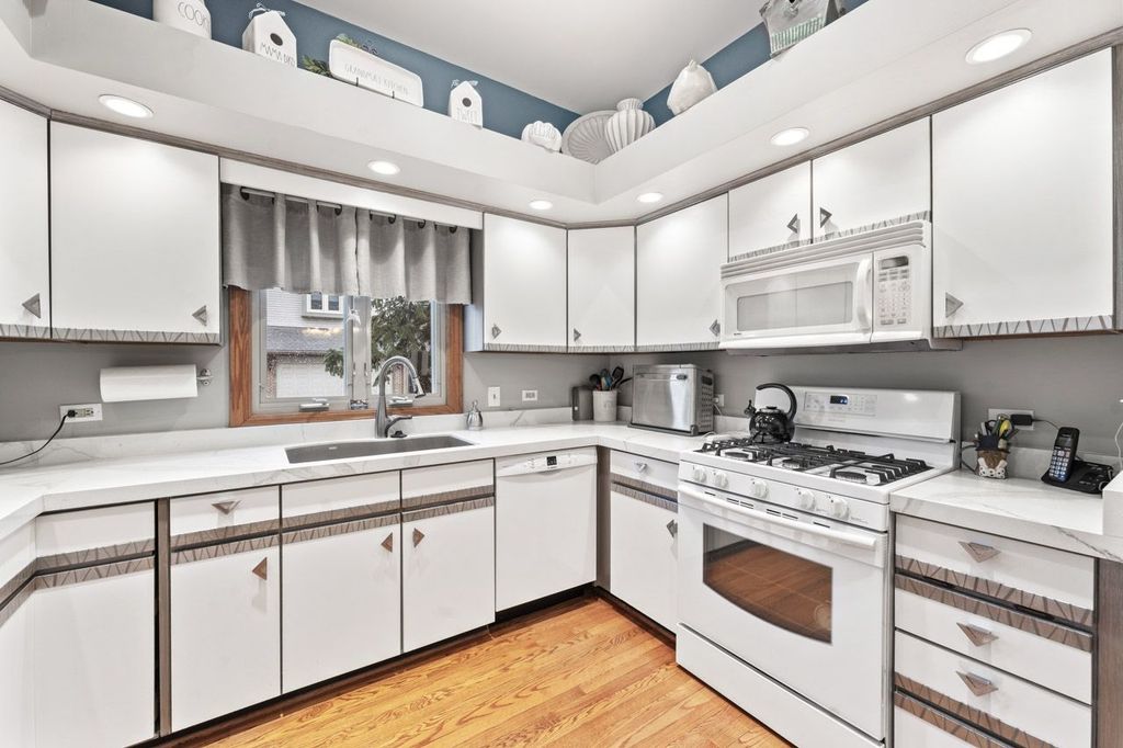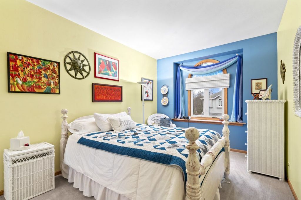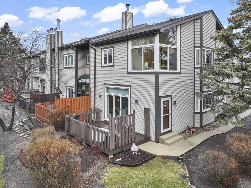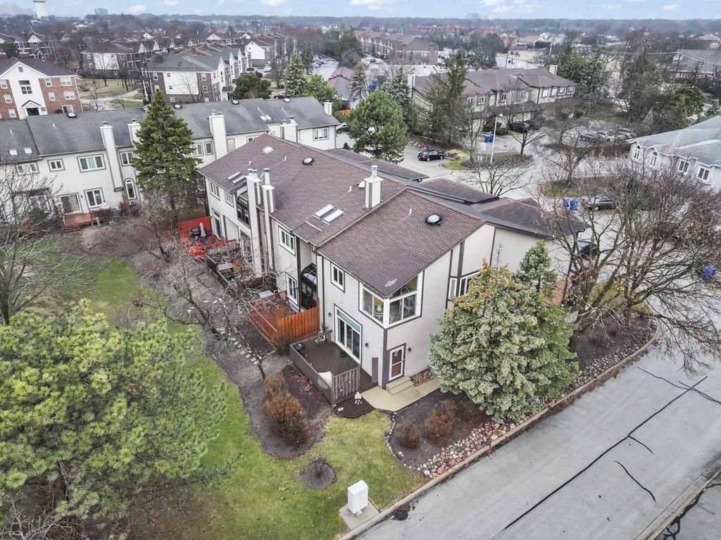 Tucked away in a private and secluded location in Mt. Prospect, this spacious end-unit townhome offers a remodeled master bathroom & kitchen and a unique layout highlighted by a bright second-floor sunroom. Upon entering, you're welcomed by a warm and inviting living room with sliding doors leading to a composite deck, perfect for relaxing or entertaining. The family room, featuring a gas log fireplace, flows seamlessly into the separate formal dining room and the kitchen, which showcases newly refaced cabinetry. Hardwood floors throughout the main level add both richness and warmth to the living spaces. Upstairs, the primary suite offers a peaceful retreat with an updated ensuite bathroom featuring a large walk-in shower, dual sinks, and a walk-in closet. The sunroom provides a wonderful space for plant lovers or a bright spot to enjoy natural light year-round. The second floor also features a spacious open loft area with a second gas log fireplace, along with a convenient laundry closet. Two additional bedrooms and a full hall bathroom complete the upper level. The finished basement adds even more living space with a large recreation room, ample closets, and additional storage. Enjoy a fantastic location within walking distance to shopping, restaurants, and parks, with quick access to I-90 (5 minutes), O'Hare Airport (15 minutes), and Busse Woods Forest Preserve (10 minutes).