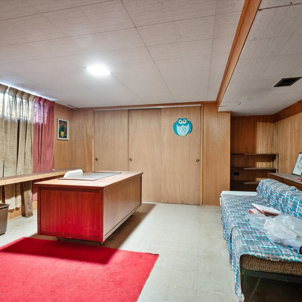 SORRY NOT OPEN. First time on the market in 45 years - this solid 3 bedroom ranch is set on a quiet block and offers endless possibility with a full basement and charming yard. The main level has a living room/dining room combo and eat in kitchen with south facing window allowing streaming sunlight. Three bedrooms (including one adjacent to kitchen that could be used as a den/family room) plus full bathroom complete the main level. The basement includes a paneled rec room with bar, office, half bath and utility/storage room. 2 car garage off alley. Newer roof, furnace, refrigerator and garage door. Showings start Friday 3/13