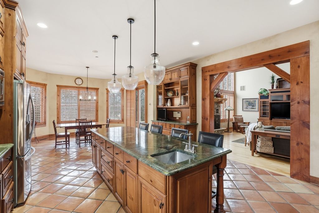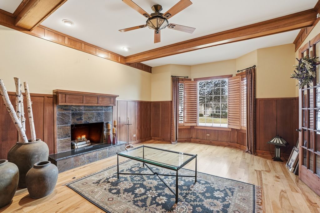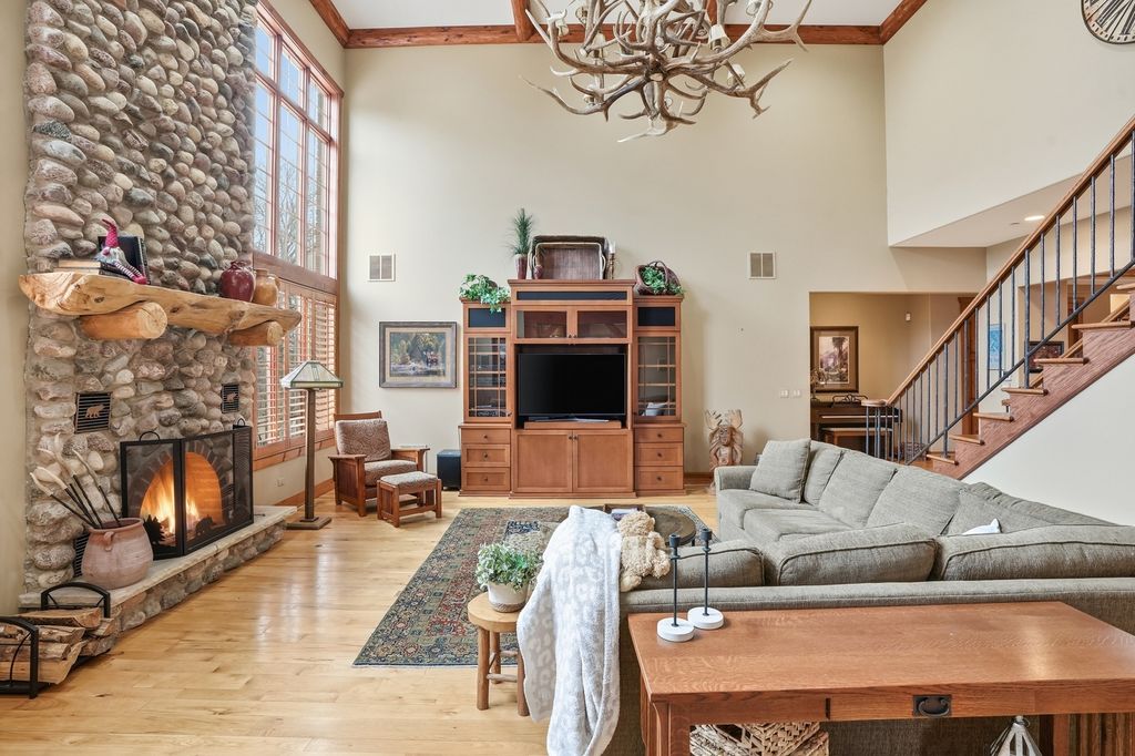 Welcome to this spacious 5,048 sq. ft. home featuring 4 bedrooms and 4.5 bathrooms with a unique cabin-style feel. Inside you'll find warm wood finishes, soaring ceilings, and large windows that bring in plenty of natural light. The generous living spaces are perfect for entertaining or relaxing by the fireplace. This home offers great character and endless potential to make it your own. The kitchen features plenty of cabinet space, granite countertops, and a walk-in pantry with ample storage. There's also plenty of room for entertaining. Just off the kitchen is a beautiful sunroom with heated floors. The spacious first floor master bedroom includes his-and-her closets and a stunning private bath. Upstairs, you'll find three additional generously sized bedrooms, each with its own bathroom. The large unfinished basement is already roughed in for a bathroom. It also features a fireplace, making it a great space to finish for additional living or entertaining. The wooded surroundings outside offer privacy and a beautiful setting for outdoor gatherings. This home also has a heated 3 car garage. Enjoy peace of mind with a brand new roof, plus a new A/C (2025) and furnace (2024). Conveniently located near shopping and dining. Don't miss the opportunity to own this unique property! Schedule your showing today!