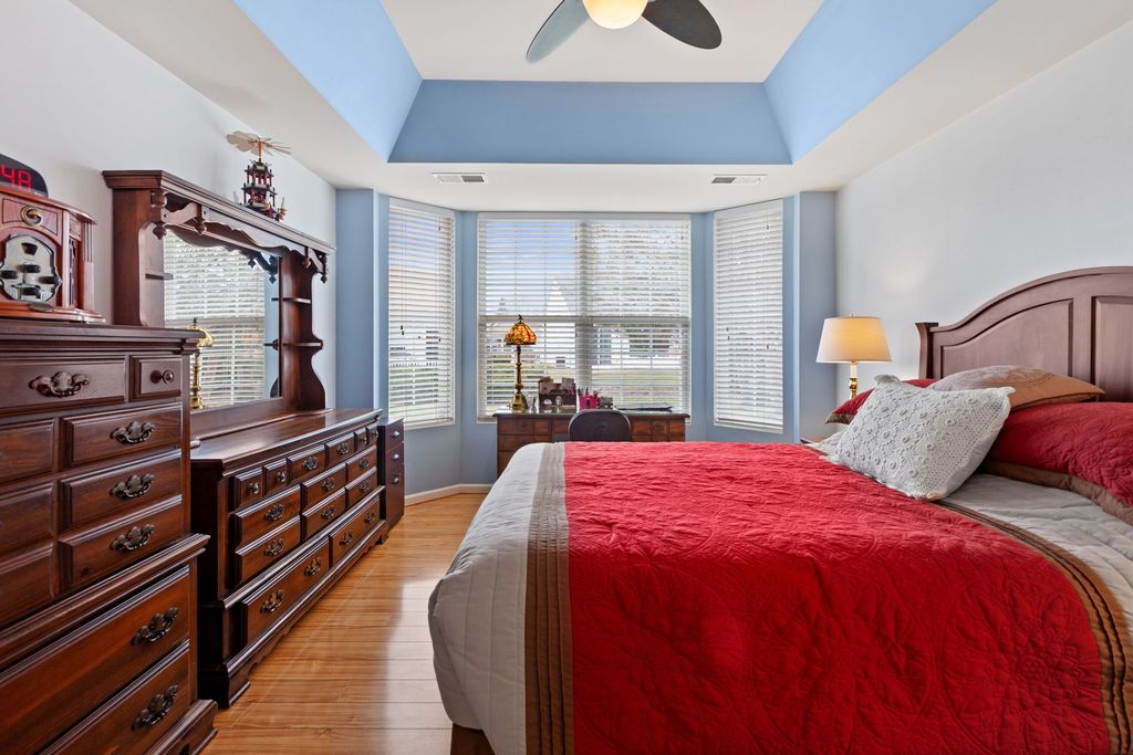 Meticulously maintained Potomac model with 2 bedrooms, den and small family room. From the open layout between living & dining room to the kitchen and adjoining small family room, this home offers the most in versatility & ease in entertainment. Living/dining room has hardwood floors; kitchen features plenty of white cabinets, stone backsplash, pantry, upgraded ceramic tile, beige appliances & an island for extra working area. Upgraded flooring throughout the house includes hardwood, laminate and ceramic floors. Master bedroom boasts of tray ceiling, bay window a huge walk in closet and an en suite bath. The latter features corian top vanity with dual sink, ceramic tile, linen closet and full shower with seat. Second bedroom has easy access to a second bath with tub, corian vanity top & solar light. Oversized 2 car garage with attic for additional storage - extra insulation has been added; utility room has newer washer & dryer ( 3 years ) and extra cabinets. Newer windows in the primary bedroom. Newer faux wood shutters ( 2 years ) and roman shades in kitchen. Newer roof ( 2019 ) & new water heater ( 2025) Home is painted in neutral earth tone. Located within Del Webb Sun City, residents enjoy world class amenities , including 18-hole golf course, state of the art fitness centers, indoor & outdoor pools, pickleball, tennis courts, walking & biking trails, an on-site restaurant and over 80 clubs & activities. Impeccably maintained and move-in ready!