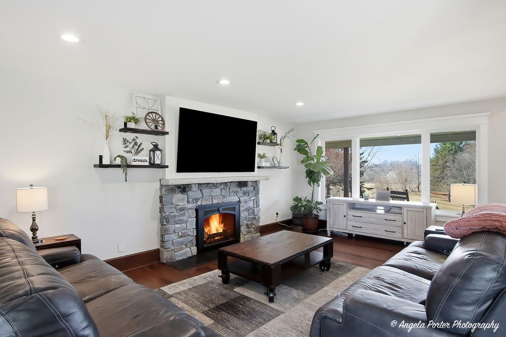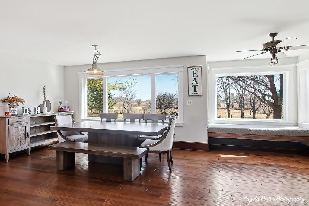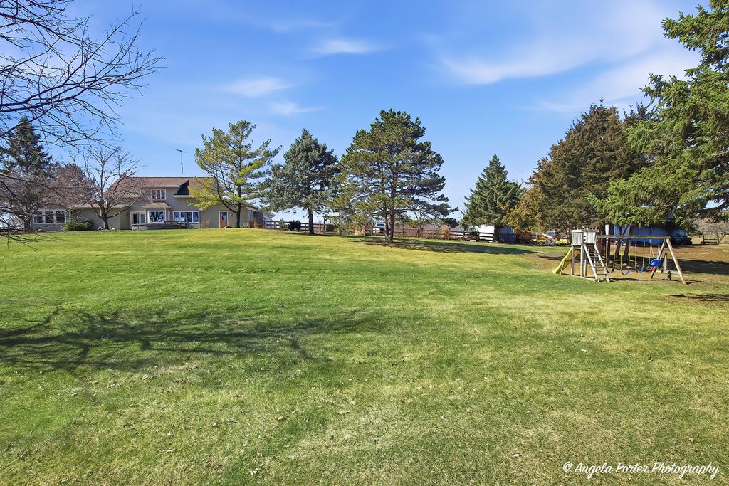 Set far back from the road and approached by a scenic winding driveway, this beautifully remodeled home sits on 10 breathtaking acres offering privacy, space, and sweeping countryside views. Completely renovated, the home blends modern upgrades with timeless country charm with the potential of over 3,700 square feet of living space. Step inside to find rich hickory hardwood flooring throughout the main level and an expansive open-concept kitchen designed for both everyday living and entertaining. The kitchen features granite countertops, a large custom island, country-style farmhouse sink, gourmet Bertazzoni range with hood, and new refrigerator. Oversized doors, custom wood framing, crown molding, and detailed trim work add warmth and craftsmanship throughout the first floor. The first-floor primary suite is a true retreat with vaulted ceilings, a spacious sitting room or office overlooking the backyard, and private access to a secluded deck. The fully updated primary bath and massive 12'x8' walk-in closet complete the suite. A second full bathroom near the rear entrance includes a large walk-in shower-perfect for cleaning up after time outdoors. Upstairs offers two additional bedrooms, an updated full bathroom, and a flexible loft space ideal for an office, reading nook, or play area. Major improvements provide peace of mind, including new windows, composite siding, roof, dual-zone HVAC, updated plumbing, and a beautiful stone fireplace. Outdoor living is just as impressive with a large brick paver patio featuring a sitting wall, a brick paver walkway, and concrete parking and RV pads. The property also includes a 26' x 33' pole barn, currently used as storage for off-road vehicles and equipment. The rear three acres were previously used as a horse riding area, offering plenty of potential for hobby farming, recreation, or animals. Enjoy peaceful mornings or sunset views from the spacious covered front porch. The unfinished basement provides additional storage or future finishing possibilities for a 4th bedroom or more entertainment space. A rare opportunity to own a move-in ready country estate with modern updates, functional outbuildings, and room to roam-all while enjoying the beauty and tranquility of Spring Grove.