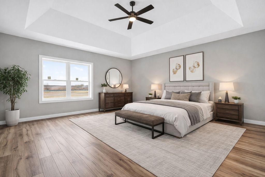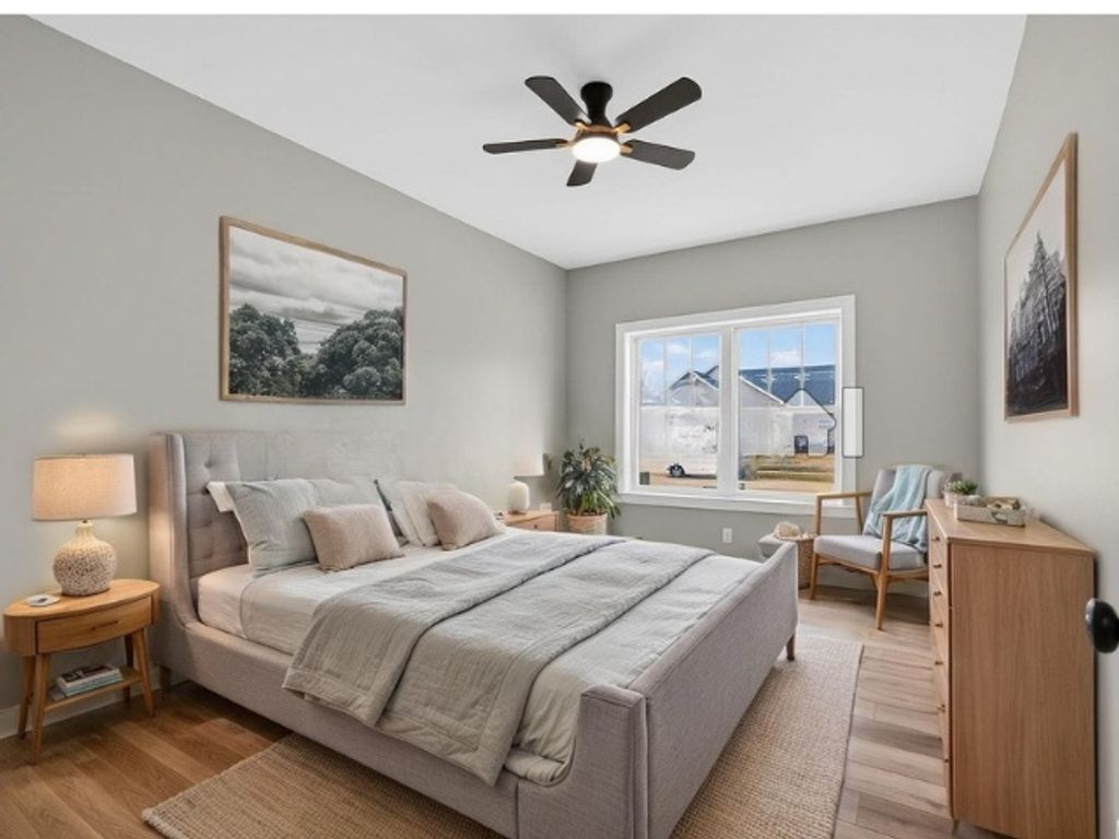 Move right into this beautifully designed Craftsman-style ranch townhome located in the desirable Farmstone subdivision. Situated on a premium lot, this home offers quality construction and energy efficiency with 2x6 exterior walls built to meet the new energy code. Vaulted ceilings and large windows throughout fill the home with natural light, creating a bright and welcoming atmosphere. The oversized kitchen is perfect for both everyday living and entertaining, featuring Quartz countertops, stunning light tan coastal cabinetry, must see in person to truly appreciate, a convenient breakfast bar, and a full pantry for plenty of storage. The spacious primary suite features elegant tray ceilings, a walk-in closet, and a private full bath with a double vanity. 4ft Crawl for extra storage. Located in the beautiful Farmstone subdivision, residents enjoy a peaceful setting with the added charm of a neighborhood pond where you can relax and enjoy fishing. Thoughtfully built for comfort, style, and lasting quality.
