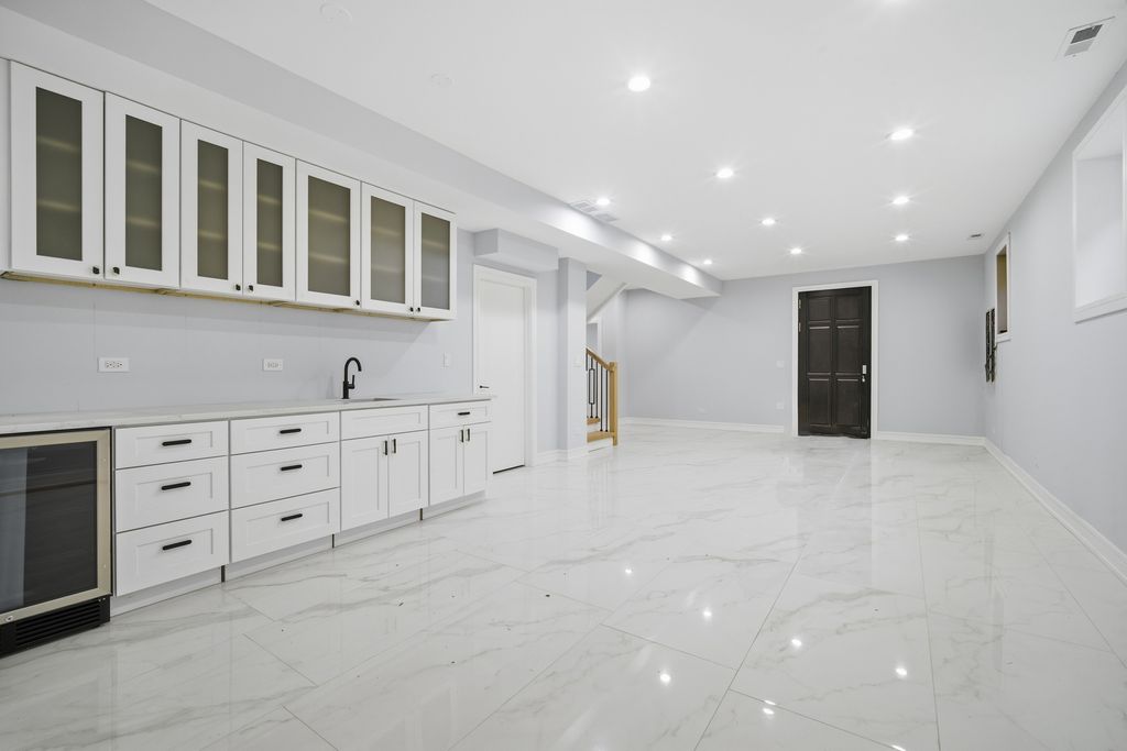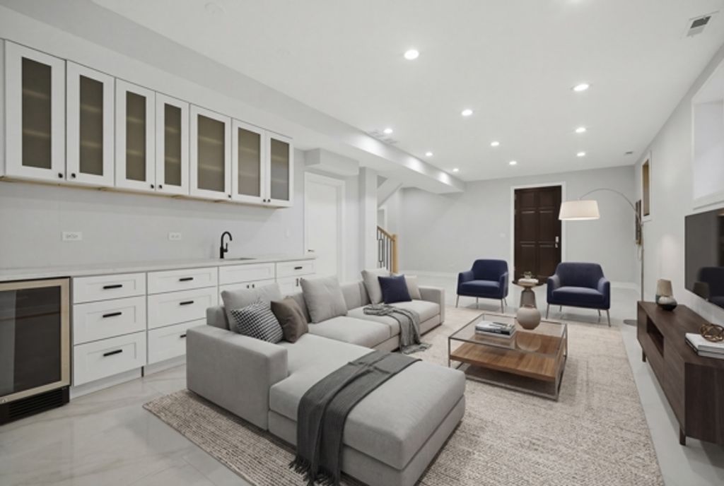 Construction is complete, and this exceptional custom home is ready to welcome its new owners! Luxury, innovation, and energy efficiency come together in this showstopping residence-truly one of Glenview's most distinctive new homes. Ideally located just steps from top-rated schools, beautiful parks, the Metra, and vibrant downtown Glenview, this home offers an unmatched combination of convenience and refined living. From the moment you arrive, the striking Ruukki metal roof sets the tone for modern sophistication and long-lasting durability. Step through the elegant oak front door into a light-filled interior where German-crafted double-pane tilt-and-turn windows flood the home with natural light while enhancing energy efficiency. Advanced insulation ensures year-round comfort and quiet living. At the heart of the home is a spectacular chef's kitchen, designed to impress. Dramatic custom cabinetry provides abundant storage, while the oversized breakfast island with extra-thick quartz countertops becomes a stunning centerpiece for gatherings. The seamless quartz backsplash adds a sleek, contemporary finish. The inviting family room with fireplace overlooks the backyard and opens to a beautiful patio-perfect for summer entertaining or relaxing evenings outdoors. The main level also offers a flexible bedroom or office and a full bath, ideal for guests or work-from-home living. Upstairs, the primary suite is a true retreat, featuring dual walk-in closets and a luxurious oversized European shower. Three additional bedrooms include a Jack-and-Jill bath, a private en-suite, and a versatile bonus room perfect for a playroom, study space, or second office. The walk-out basement expands the living space with heated floors, a relaxing sauna, a full bath, a spacious recreation room, and an additional bedroom-perfect for guests or extended family. Additional highlights include heated floors, two laundry rooms, 400-amp electrical service, and CAT5 wiring for seamless smart-home integration. This remarkable home offers the rare combination of modern design, cutting-edge efficiency, and everyday luxury.