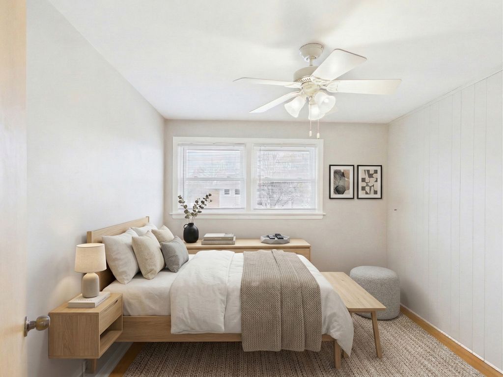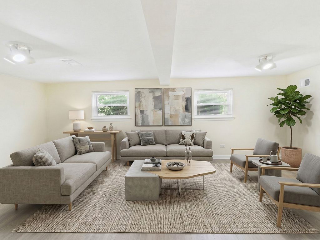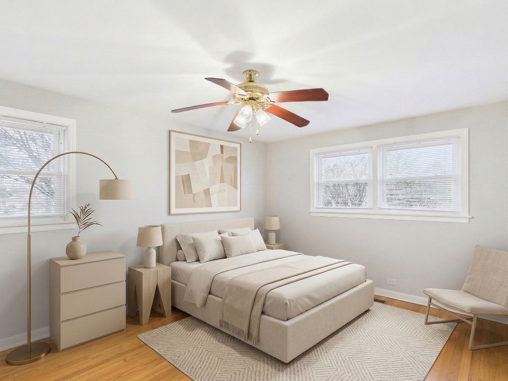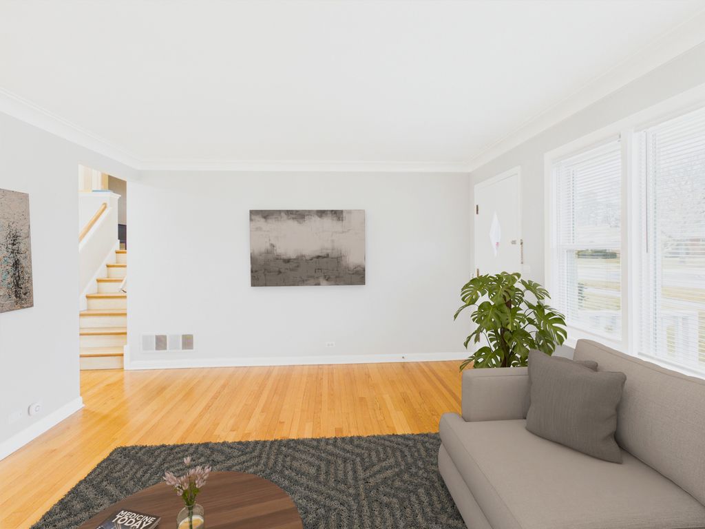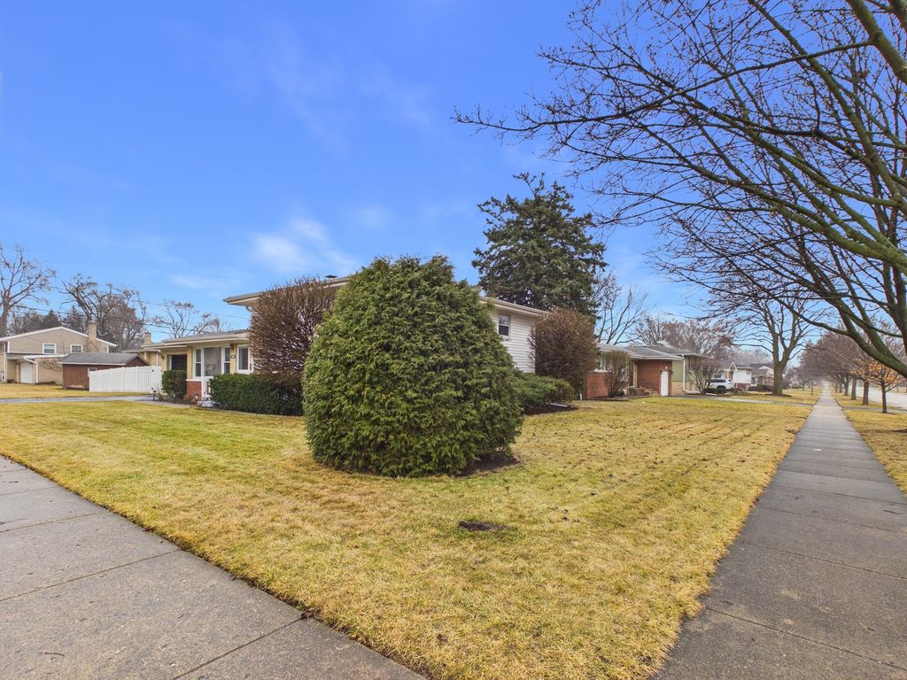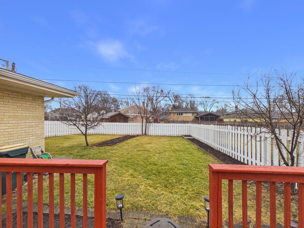 Welcome to this beautifully updated mid-century home nestled in the highly desirable Stoltzner neighborhood of Arlington Heights, located within the award-winning Prospect High School District (214)-one of the most sought-after school districts in the northwest suburbs. This thoughtfully maintained 3-bedroom, 2-bath residence blends timeless character with modern upgrades, offering both style and peace of mind for today's buyer. Hardwood floors run throughout the main living spaces, while a dramatic skylight fills the spacious living area with natural light. The fully renovated kitchen (2019) features sleek quartz countertops, updated appliances, and picturesque views overlooking the expansive 20x18 deck and oversized backyard-perfect for entertaining, gardening, or relaxing outdoors. The home has been extensively improved with major updates including a new roof and siding, upgraded insulation, new windows (2018), and a newly installed fence. Both bathrooms have been recently renovated, including a newly updated basement bath and a second-floor bath completed in 2025. Additional improvements include new basement flooring, a new washer, updated refrigerator, and significant exterior and structural work completed last year. Major mechanicals include HVAC and water heater installed in 2017. The versatile lower level offers excellent flexibility for a recreation room, guest space, or home office, along with a generous 13x12 laundry and utility room. A 2-car garage with EV charging station, and abundant storage complete the home. Ideally located near parks, walking trails, shopping, dining, and everyday conveniences, this move-in-ready home offers the perfect balance of comfort, updates, and location in one of Arlington Heights' most charming neighborhoods.