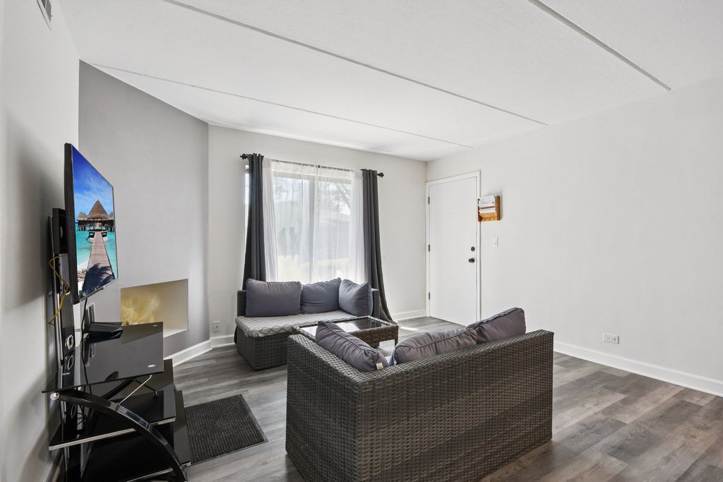 Discover the perfect blend of comfort and convenience in this beautifully updated 1-bedroom, 1-bath condo at Cambridge Cove. Located on the first floor, this home features a bright and spacious layout with new LVP flooring throughout, freshly refinished drywall and modern paint (2025) for a clean, move-in ready feel. The living room features a decorative fireplace and flows in to the L shaped dining room. The kitchen is equipped with stainless steel appliances, a large pantry and granite countertops. French doors lead to the bedroom with a walk in closet and attached bath with whirlpool tub. In unit laundry with a newer washer & dryer and a private patio with peaceful park views complete this unit. One exterior parking space included in the price. Enjoy stress-free living with an HOA that covers exterior maintenance, lawn care, snow removal, water, and trash. Nestled near the DuPage River Trail, you'll have easy access to the scenic Riverwalk, parks, shopping, dining, and highly rated District 203 schools.