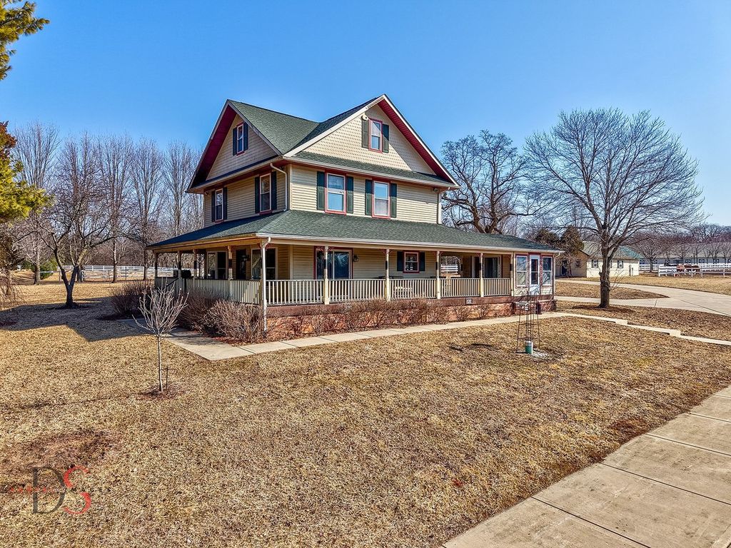 3 story classic farmhouse with wrap around porch on 2 acres with incredible scenery. Adjacent to boarding stable. Whole house propane generator. Located on a quiet country road, heavily wooded with few neighbors. Walk to Millington forest preserve. 20 minutes from Yorkville, 30 minutes to Oswego, Ottawa, Morris, Plainfield, Joliet.