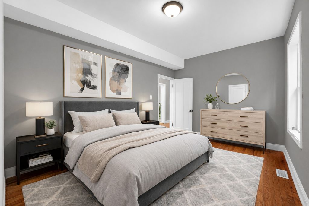 This property is for the buyer looking for the perfect in-law arrangement, rental potential or AirBNB opportunity. The main level features 4 bedrooms and 2 full baths, while the 2nd level features 2 more bedrooms and a full bathroom, totaling a 6 bedroom home with 3 full baths. The main level features separate living room and dining room with hardwood floors, custom accent walls, recessed lighting, and a modern kitchen with quartz countertops, custom cabinetry, stainless steel appliances. The basement is finished with a full bathroom and 2 bedrooms. The 2nd level has it's own ingress and egress and features 2 bedrooms, full bathroom, kitchen and living room. Many improvements include new roof, siding, windows, plumbing, electrical, HVAC, water heater, and more.