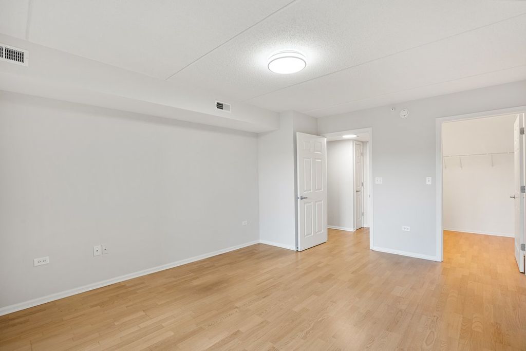 Rarely available spacious one-bedroom condo with den in the highly sought-after Stonegate subdivision. Move-in ready! This desirable "Crystal" model offers a bright and open layout with a combined living and dining room. Recently painted and featuring engineered wood flooring, updated lightning, updated window treatments. The sliding glass door leads to a private balcony, perfect for relaxing. The large bedroom includes a walk-in closet. The unit also features in-unit washer and dryer and new stainless steel appliances in the kitchen. Enjoy the convenience of an indoor heated garage space, plenty of visitor parking, and a private secured storage room. The secure building includes an elevator and well-maintained common areas. Residents also enjoy a beautifully landscaped complex with a gazebo park. Located in the heart of downtown Des Plaines, just blocks from the Metra station, library, theatre, city hall, grocery stores, parks, restaurants, and more. Easy access to O'Hare Airport, Rosemont Fashion Outlets, and major highways. Monthly assessments include heat, cooking gas, water, cable TV, and internet, offering comfortable and low-maintenance living in a prime location.