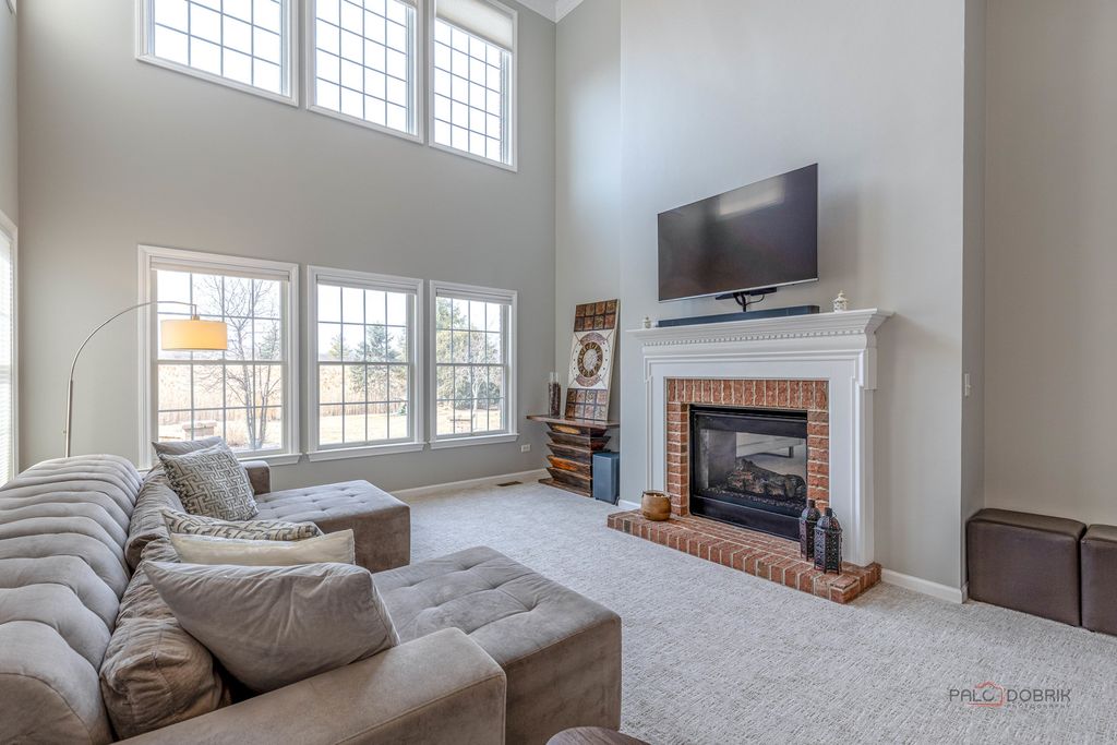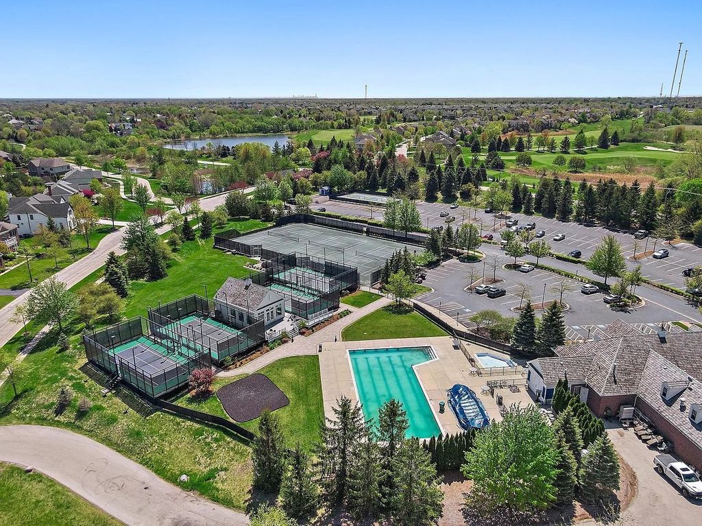 Welcome to this beautifully maintained four-bedroom, 2.1-bath home with a new roof located in the sought-after Hawthorn Woods Country Club golf community. Set within a neighborhood known for its exceptional clubhouse and resort-style amenities, including tennis courts, pickleball, pool, etc this home offers both comfort and an active lifestyle. Step inside to find sun-filled spaces and hardwood flooring on the main level. A welcoming foyer opens to the formal living and dining rooms, creating the perfect setting for entertaining. The impressive two-story family room features a cozy fireplace and abundant natural light, seamlessly flowing into the spacious kitchen. Designed for both everyday living and gatherings, the kitchen features stainless steel appliances, quartz countertops, a large island with breakfast bar seating, and ample cabinet space. The main level also offers a versatile bedroom or home office, a sunroom, a convenient half bath, and a laundry room. Upstairs, a loft overlooking the family room provides additional flexible living space. The expansive primary suite includes a relaxing sitting area and a private ensuite bath with a double-sink vanity, soaking tub, and a large shower with dual shower heads. Three additional generously sized bedrooms and a full hallway bath complete the second level. Outside, enjoy a premium golf view backyard featuring a brick paver patio and fire pit-perfect for relaxing or entertaining. Meticulously cared for and filled with natural light, this home combines elegant spaces, thoughtful design, and an outstanding lifestyle. Welcome Home!