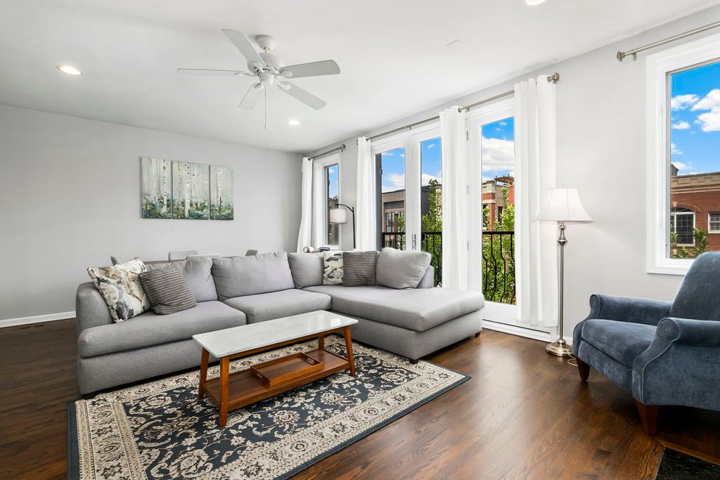 Experience refined city living in this beautifully appointed three-bedroom, two-bath residence nestled in the heart of Chicago's sought-after Roscoe Village/Lakeview neighborhood. Designed with both comfort and style in mind, this sun-filled home welcomes you with a sophisticated open-concept layout ideal for modern living and entertaining. The chef-inspired kitchen features elegant white cabinetry, stainless-steel appliances, and a generous breakfast bar that seamlessly flows into the expansive living and dining area, highlighted by a stunning gas fireplace that creates a warm and inviting focal point. Retreat to the spacious primary suite, complete with a luxurious ensuite bathroom featuring a double vanity and thoughtfully designed finishes. Two additional generously sized bedrooms and a well-appointed full bath offer flexibility for guests, a home office, or additional living space. Additional features throughout the home include rich hardwood floors, in-unit laundry, and a private balcony-perfect for enjoying morning coffee or evening sunsets. Two-car tandem parking is included for added convenience. Perfectly situated just steps from neighborhood favorites including restaurants, boutiques, parks, and grocery stores, with close proximity to Hamlin Park and Feller Park. Enjoy effortless access to public transportation, major highways, and Lake Shore Drive. Located within the highly regarded Jahn Elementary and Lake View High School districts. Moments from the vibrant destinations of Roscoe Street, the Southport Corridor, Wrigleyville, Bucktown, and Chicago's iconic lakefront, this exceptional home offers the best of luxury, lifestyle, and location. A rare opportunity to experience elevated living in one of Chicago's most desirable neighborhoods.