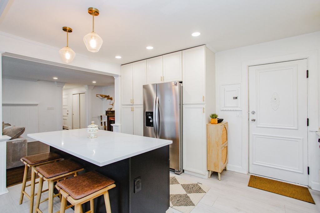 Spacious, open floor plan featuring hardwood floors throughout and a beautifully updated kitchen with stainless steel appliances, quartz countertops, solid wood cabinetry, and stylish gold hardware. Elegant woodwork and exposed brick adds warmth and character throughout the unit. The expansive living, dining, and kitchen area offers an ideal layout for entertaining and everyday gatherings, with a private balcony conveniently located off the dining room. This is also one of the few units featuring a cozy fireplace. Enjoy two generously sized bedrooms, two walk-in closets, and plenty of additional storage throughout, along with the convenience of an in-unit full size washer and dryer. Notably, many two-bedroom units of this size within the complex have been converted into three-bedroom layouts, offering a potential option for future customization. Playground, multiple courts for sports and picnic areas provide a welcoming outdoor space for residents and families. Perfect for owner-occupants or investors alike, offering excellent rental potential. Prospect High School District. Move-in condition. MUST SEE!