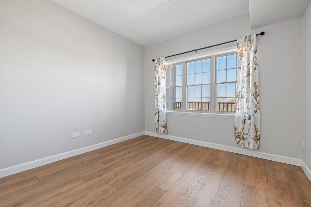 Beautiful, freshly painted 1-bedroom condo on the 5th floor in the desirable Crossings community. Move-in ready with new vinyl flooring, maple kitchen cabinets, new stainless steel appliances, new baseboards and outlets, smart thermostat, and newer in-unit washer & dryer. Bright living area with private balcony (table and chairs included). Bedroom with double-door closet plus walk-in hallway closet. Includes heated garage space #58 and 2 storage units. Pet friendly. Great location one block from Metra, restaurants, shopping, Park District with pool, Ice arena, fitness center with easy access to I-90/I-294, Rosemont entertainment, and O'Hare.