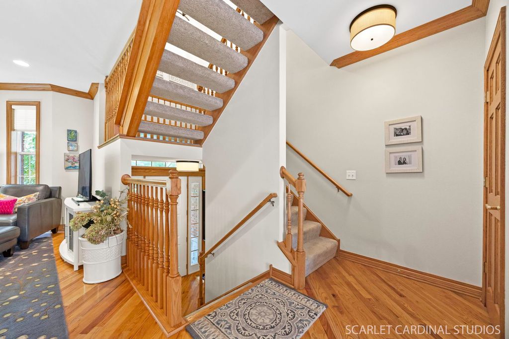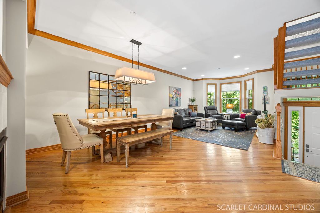 Welcome to 755 Prescott Court - a stunning urban-style townhome offering a peaceful, wooded retreat just moments from all that North Naperville has to offer! Distinct from other homes in the complex, this residence offers approximately 300 additional square feet compared to traditional end units, thanks to its three-bedroom layout and expanded great room and dining area. Tucked in the back of the desirable Prescott Woods community and overlooking mature trees, this home enjoys rare privacy with direct access to trails leading into the nearby forest preserve. It truly feels like your own wooded slice of heaven. This beautifully designed home features THREE bedrooms, two full bathrooms, and TWO half bathrooms, all thoughtfully laid out within a spacious, open floor plan. The main level boasts 9-foot ceilings, rich hardwood floors, a striking two-way fireplace, and detailed wood trim that creates a warm yet refined atmosphere. Upstairs, the luxurious primary suite features elegant tray ceilings, a walk-in closet with a sleek glass barn door, and a spa-inspired en suite bath designed for relaxation. The lower level offers a versatile flex space - perfect for a home office, additional living area, workout room, or guest retreat - with direct access to a professionally landscaped patio ideal for quiet outdoor enjoyment. Located in North Naperville, this home is just minutes from downtown, the Metra station, the DuPage River Trail, and is served by the award-winning Naperville District 203 schools. Privacy. Style. Convenience. All in one exceptional property.