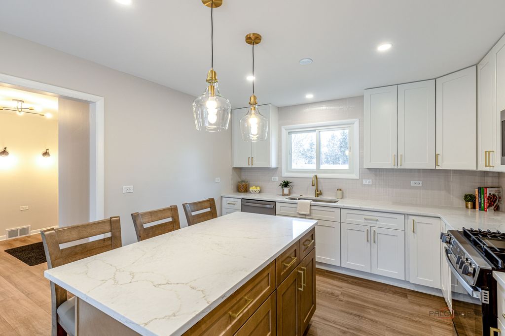 COMPLETELY REMODELED, TURN-KEY RANCH ON A PRIVATE 1.28-ACRE CUL-DE-SAC IN TOP-RATED SCHOOL DISTRICTS! This beautifully reimagined home blends today's most sought-after finishes with a functional layout - all just minutes from Independence Grove, the Metra, I-94, shopping, and dining, and located in the highly acclaimed Oak Grove Elementary and Libertyville High School districts. From the moment you arrive, the fresh limewashed brick exterior creates a crisp, modern first impression, complemented by a NEW roof, NEW windows, NEW A/C, and an inviting NEW screened-in porch (all 3 months new). Inside, brand-new luxury vinyl plank flooring flows seamlessly throughout the home, complemented by fresh paint in today's trending color palette, while new fixtures and thoughtful upgrades enhance every space. Front and center, the sun-drenched living room showcases a large bayed window and a dramatic floor-to-ceiling stone fireplace with raised hearth offering the perfect focal point for everyday living and entertaining. The completely remodeled designer kitchen (2026) is a standout feature, offering gorgeous quartz countertops, a center island with breakfast bar seating, stainless steel KitchenAid appliance package, and ample space for a dining table. A sliding door leads to the screened-in porch, creating seamless indoor-outdoor living where you can enjoy meals while taking in sweeping views of your expansive backyard all while being comfortably sheltered from the elements. When it's time to unwind, the primary suite offers a cozy desk nook, barn door entry to a large walk-in closet with custom shelving, and a beautifully updated private bath featuring a dual-sink vanity and tiled shower. Two additional bedrooms, two additional fully remodeled baths, and a convenient laundry area with new washer and dryer complete the main level. The finished basement offers incredible bonus living space, featuring white brick walls, modern ceiling, luxury vinyl floors, a spacious rec room with a wood-burning fireplace, wet bar, half bath, and flexible areas ready for your home gym, office, or hangout space. Additional highlights include an attached 2-car garage, an extra-long paver driveway with side apron providing abundant parking, and brand new electrical panel. Move-in ready, extensively updated, and ideally located; this is the one that checks every box. This property is not listed for rent.