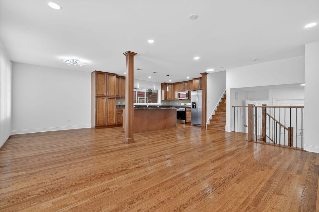 MULTIPLE OFFERS NOW. Welcome to 2145 N 77th Ct - an exceptionally spacious, over 2,000 sq ft,(check the floor plan) beautifully updated 4-bedroom, 2-bath bi-level home, ideally located on a quiet, tree-lined street in highly desirable South Elmwood Park. This impressive residence offers a rare combination of size, updates, and location-all within walking distance to Elmwood Elementary, Middle School, High School, the Metra station, and local restaurants. The bright, open-concept main level features refinished hardwood floors with a modern look, a large living and dining area filled with natural light, and a stunning remodeled kitchen with modern finishes, a center island, and generous counter space-perfect for everyday living and entertaining. The upper level offers three spacious bedrooms, including a large primary suite with a private bath and double closets. The 1st floor level also includes a flexible 4th bedroom, ideal for a home office or guest suite, along with a comfortable family room perfect for relaxing. The unfinished crawl sub-basement provides incredible potential to create additional living space, such as a recreation room, home gym, or theater, while currently offering abundant storage. Step outside to a beautifully landscaped yard and covered patio-ideal for entertaining and outdoor gatherings. The oversized attached 2-car garage and expansive concrete driveway provide ample parking for guests, multiple vehicles, or recreational toys. Major recent updates include brand-new windows (2025), a high-efficiency HVAC system, a high-efficiency water heater, a fully remodeled kitchen (2025), refinished hardwood floors (2025), and updated bedrooms (2025). Homes offering this level of space, condition, and location rarely come to market. Move-in ready with nothing to do but enjoy. Schedule your showing today before it's gone.