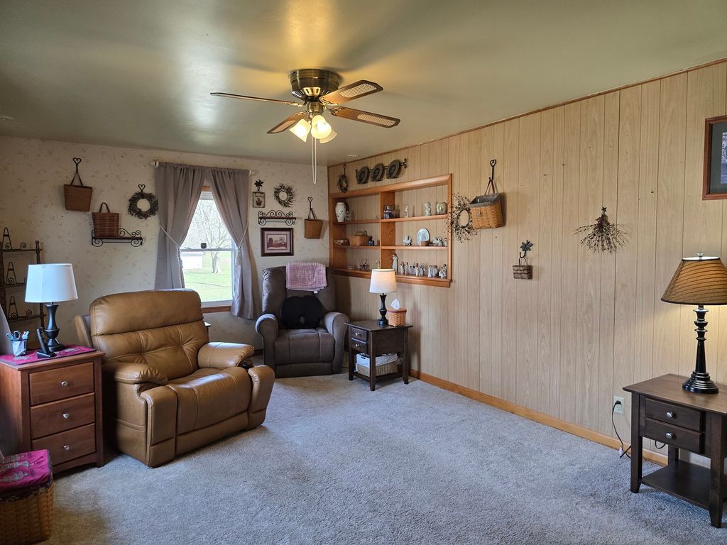 Just outside the city limits with no deed restrictions on over a half acre, you will find this compact home ready for new owners. The home features Living and Kitchen/Dining Combo, 2 bedrooms and a full bath with a whirlpool, walk in tub all on the main floor. The walkout basement is easily accessible with a stairlift that will pass with the sale. The finished part of the basement includes a family room area (possible 3rd bedroom), recreation area (most recently a beauty shop area) and the unfinished storage, utility and laundry area with an additional shower. Access to the carport is also through the basement. The home has also had replacement windows installed. Opportunity knocks. Will you be the one to answer?