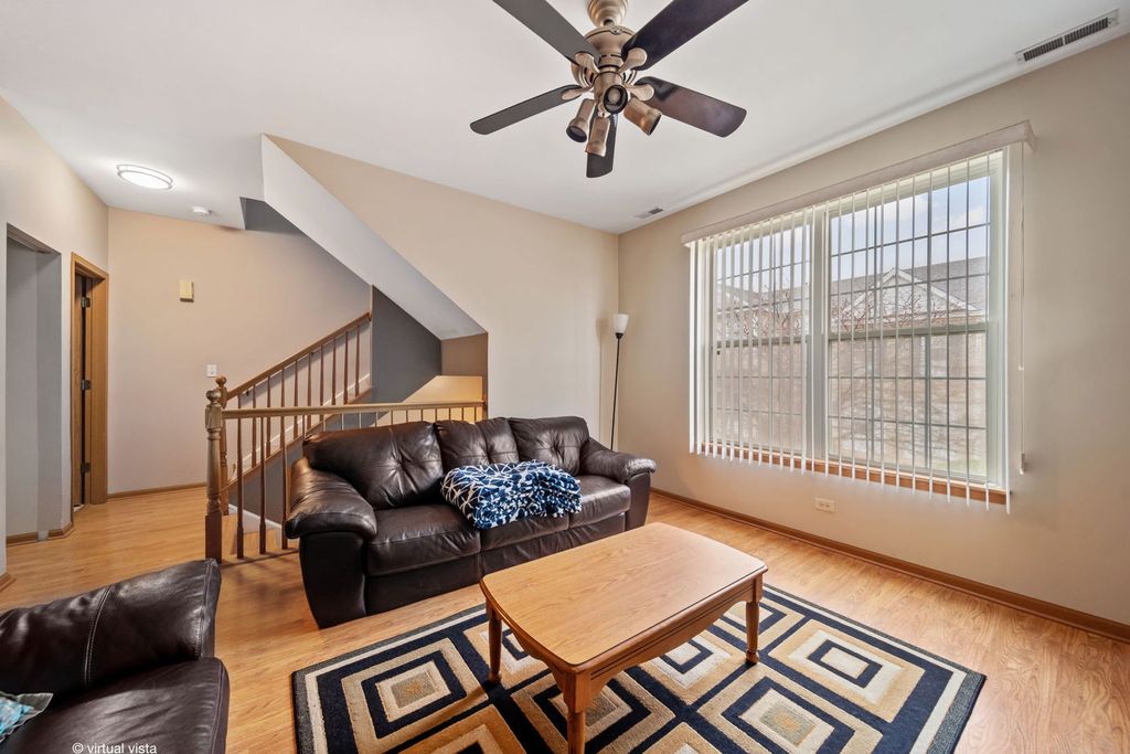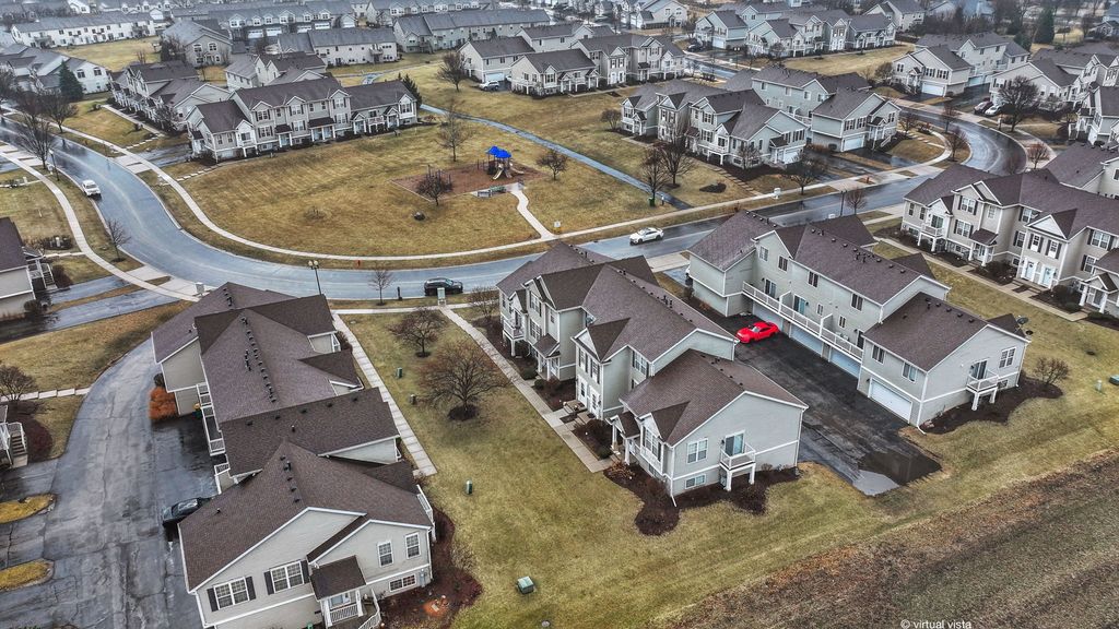 Immaculate townhome in the highly sought-after Kipling Estates community, offering an exceptional blend of comfort, style, and amenities. Residents enjoy access to a clubhouse, outdoor pool, parks and playgrounds, tennis courts, fitness center, putting green, party room, and scenic walking trails. This move-in ready home features wood laminate flooring throughout the entire main level and a bright, open-concept living and dining area with a convenient half bath. The well-appointed kitchen overlooks the main living space and offers abundant cabinetry, granite countertops, a center island, pantry, generous dining area, and sliding glass doors leading to a private balcony. All appliances are included. The second level offers a spacious primary suite with vaulted ceilings, walk-in closet, and private full bath. A generously sized second bedroom, an additional full bath, and a conveniently located laundry room-complete with washer and dryer-complete the upper level. The finished lower level provides flexible living space ideal for a third bedroom, home office, family room, fitness area, or additional recreation space. A two-car attached garage and under-stair storage add everyday convenience. Recent updates include a newer roof, furnace, and updated light fixtures. Enjoy maintenance-free living with exterior upkeep, lawn care, and snow removal included. Ideally located near shopping, dining, nature preserves, and with easy access to I-55 and I-80. Situated within the highly regarded Minooka School District.